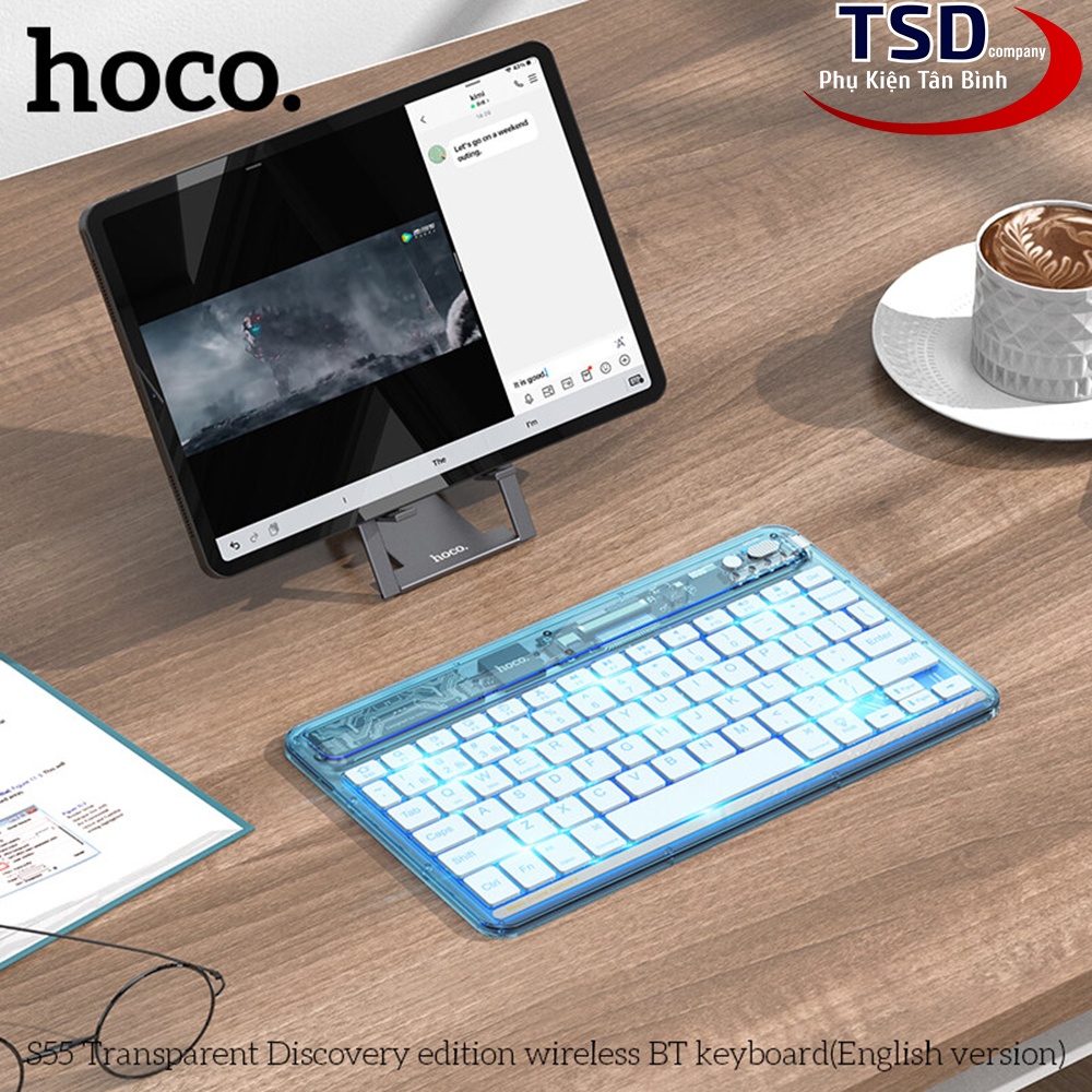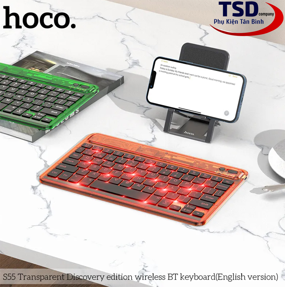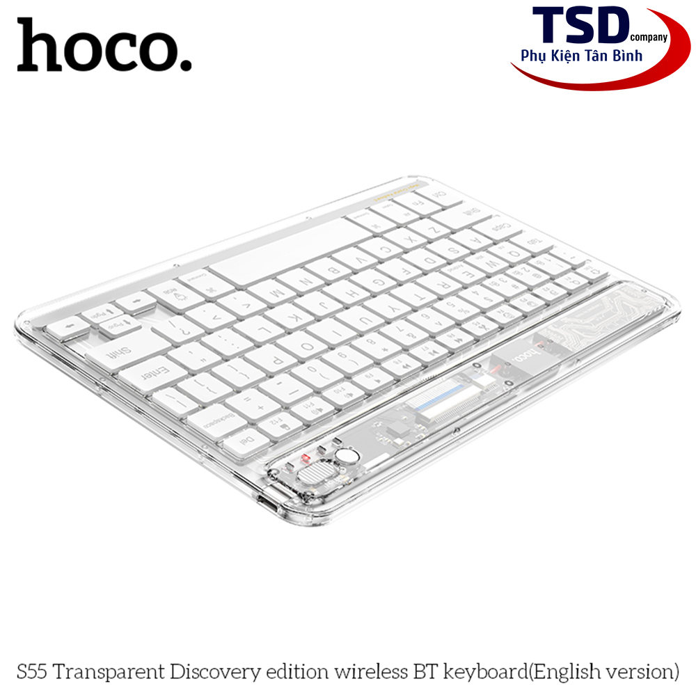 Bàn Phím Bluetooth Mini Trong Suốt Hoco S55 là chiếc bàn phím nằm giữa ranh giới của tốt và tốt nhất trong các sản phẩm từ nhà Hoco. Một chiếc bàn phím có 78 phím với thiết kế bằng vật liệu PC trong suốt giúp bàn phím trở nên nổi bật hơn trên bàn làm việc của bạn. Bàn Phím Bluetooth Mini Trong Suốt Hoco S55 có thể mang lại cho người dùng như thiết kế gọn gàng, chắc chắn, keycap cao cấp,… Có thể nói, đây là mẫu bàn phím có thể “ăn đứt” các dòng phím khác trong cùng phân khúc giá của các hãng khác. Nếu bạn là người thích mẫu bàn phím gọn gàng nhưng vẫn mang vẻ nổi bật riêng biệt thì hãy cùng Phụ Kiện Tân Bình tìm hiểu thông tin chi tiết về sản phẩm này nhé.