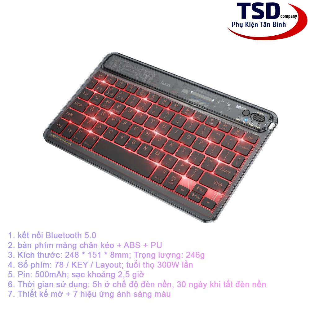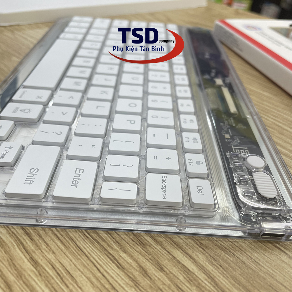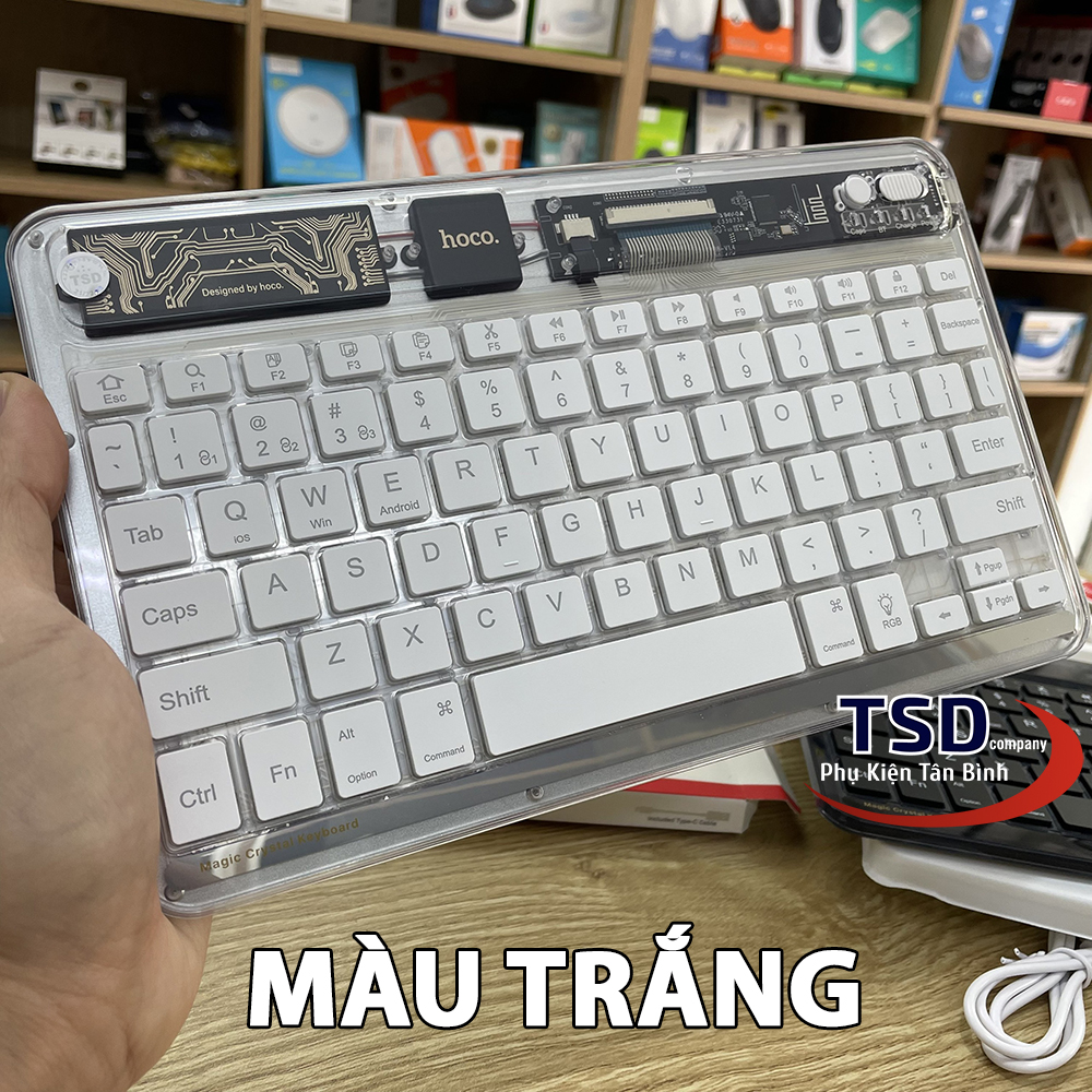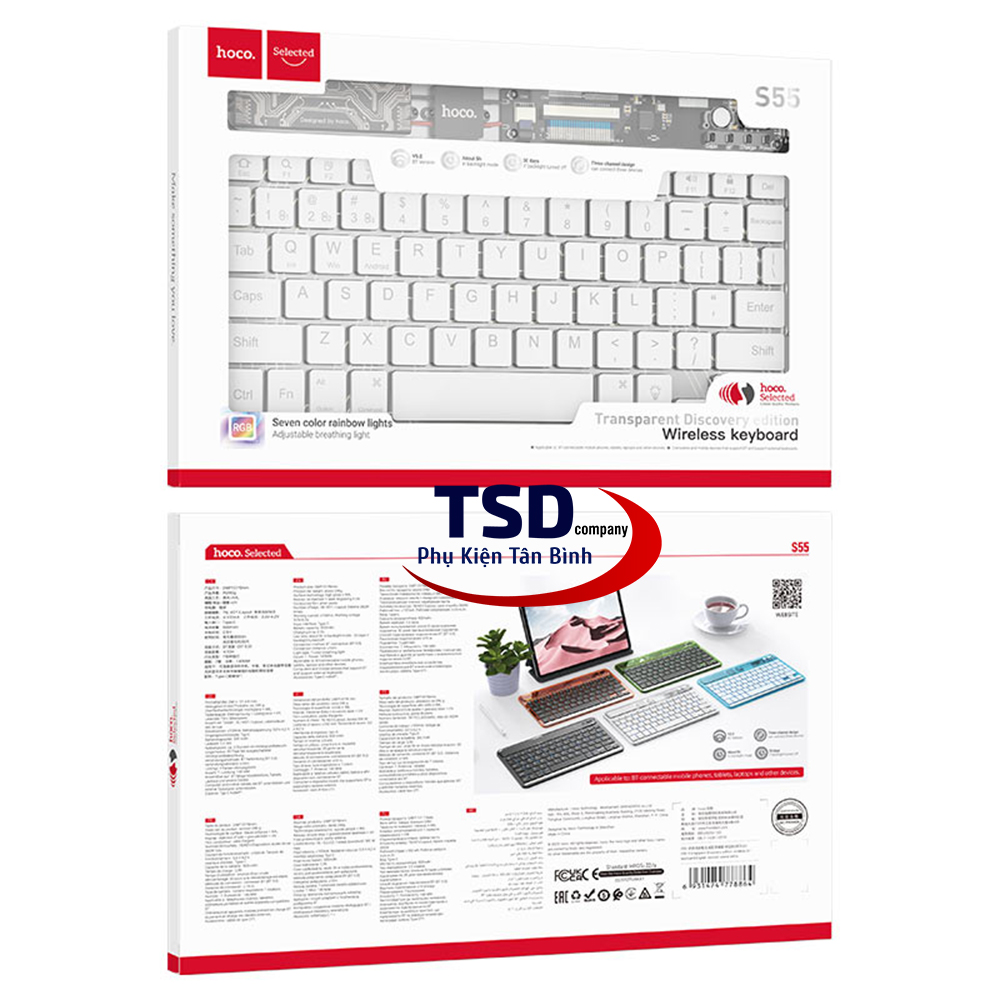 Bàn Phím Bluetooth Mini Trong Suốt Hoco S55 là chiếc bàn phím nằm giữa ranh giới của tốt và tốt nhất trong các sản phẩm từ nhà Hoco. Một chiếc bàn phím có 78 phím với thiết kế bằng vật liệu PC trong suốt giúp bàn phím trở nên nổi bật hơn trên bàn làm việc của bạn. Bàn Phím Bluetooth Mini Trong Suốt Hoco S55 có thể mang lại cho người dùng như thiết kế gọn gàng, chắc chắn, keycap cao cấp,… Có thể nói, đây là mẫu bàn phím có thể “ăn đứt” các dòng phím khác trong cùng phân khúc giá của các hãng khác. Nếu bạn là người thích mẫu bàn phím gọn gàng nhưng vẫn mang vẻ nổi bật riêng biệt thì hãy cùng Phụ Kiện Tân Bình tìm hiểu thông tin chi tiết về sản phẩm này nhé.