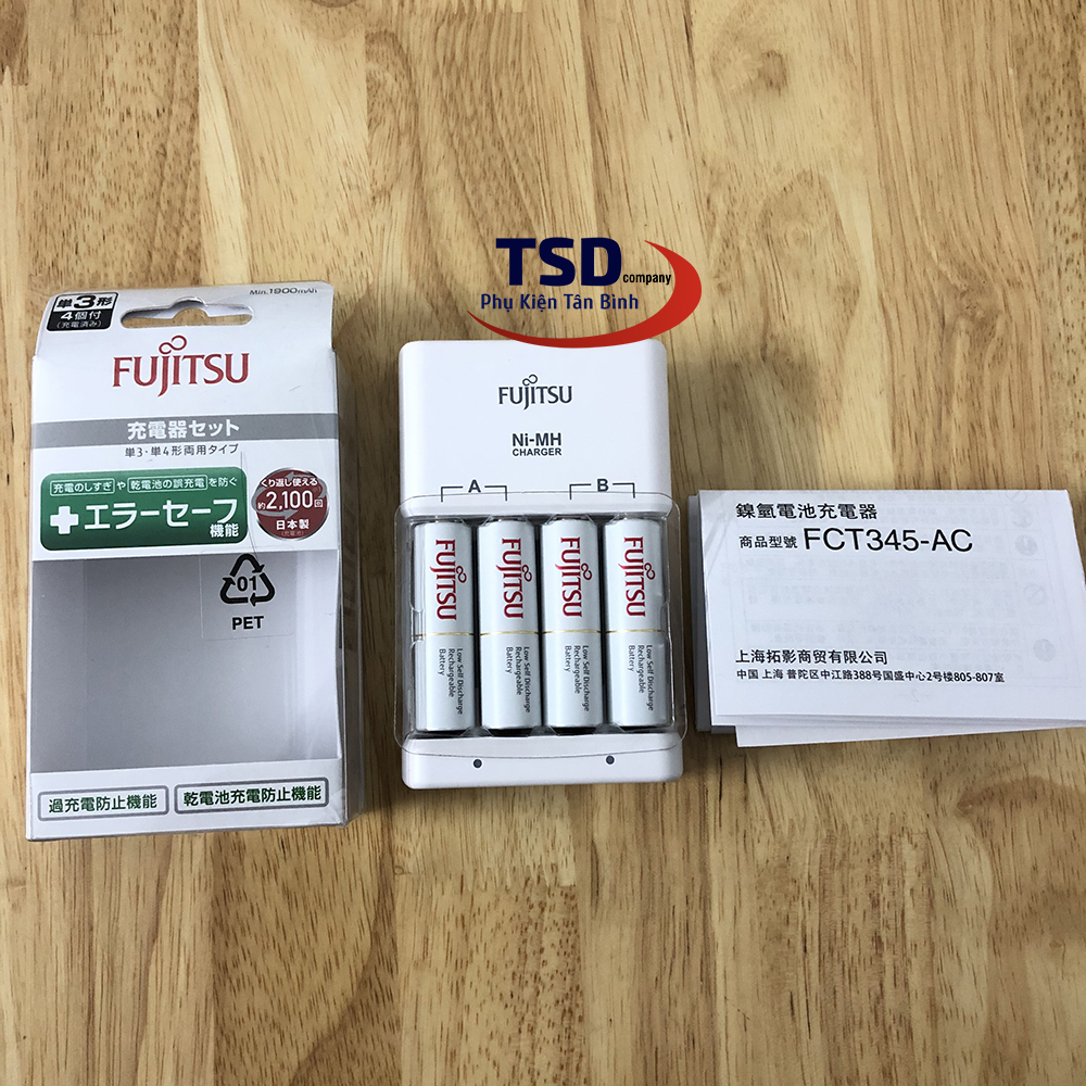 Bộ 4 Pin AA & Sạc FUJITSU FCT345 Chính Hãng