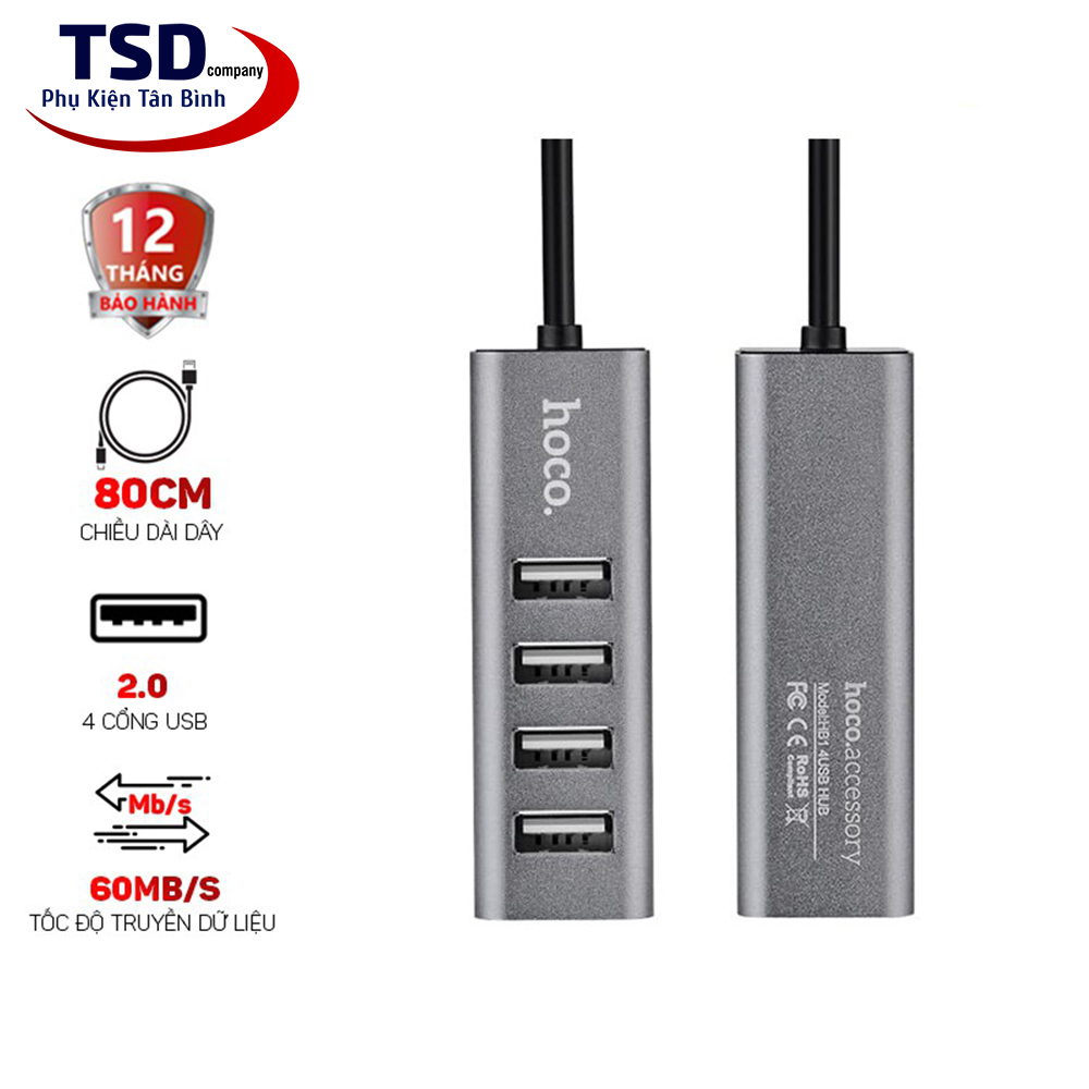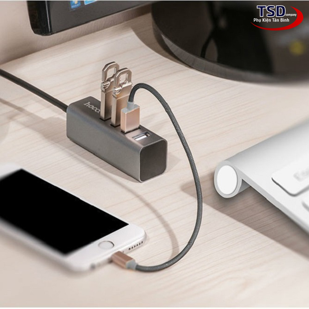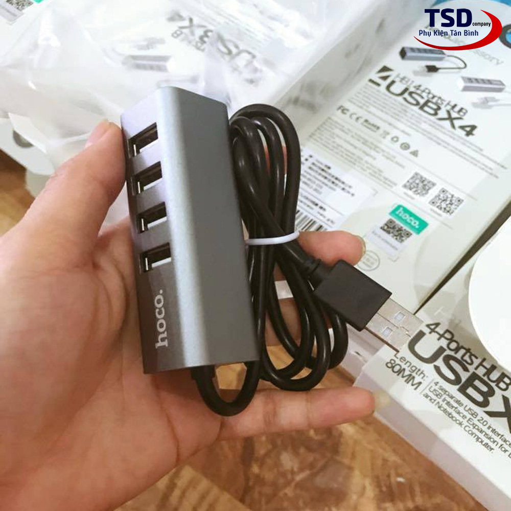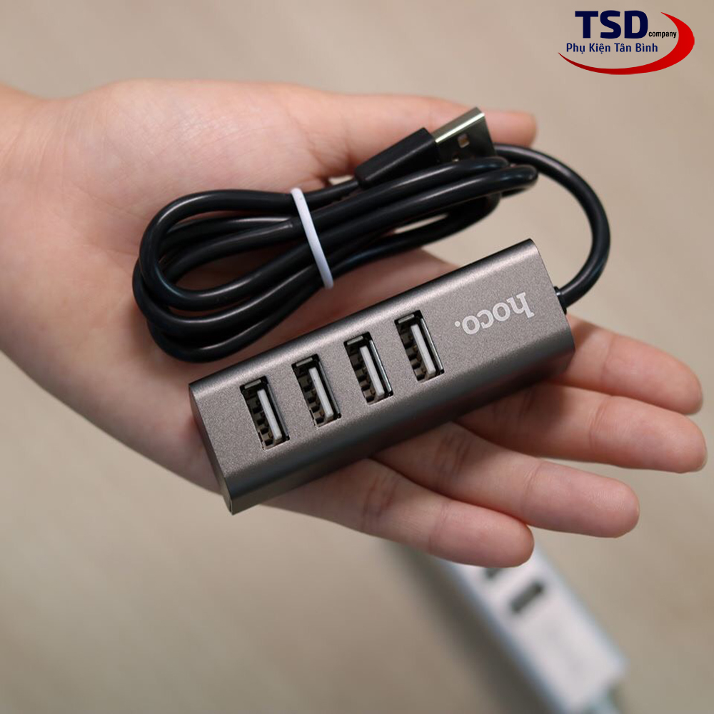 Hub USB Hoco HB1 với 4 cổng USB 2.0 và một đầu USB để kết nối với cổng USB trên máy tính. Hoco HB1 hỗ trợ chia cổng usb trên máy tính thành 4 cổng usb trên hub. Ngoài việc hỗ trợ truyền dữ liệu thì Hub còn giúp bạn kết nối với những thiết bị sử dụng cổng USB khác. Như quạt tản nhiệt, USB, chuột, lót chuột rgp, fan mini, đầu đọc thẻ nhớ…