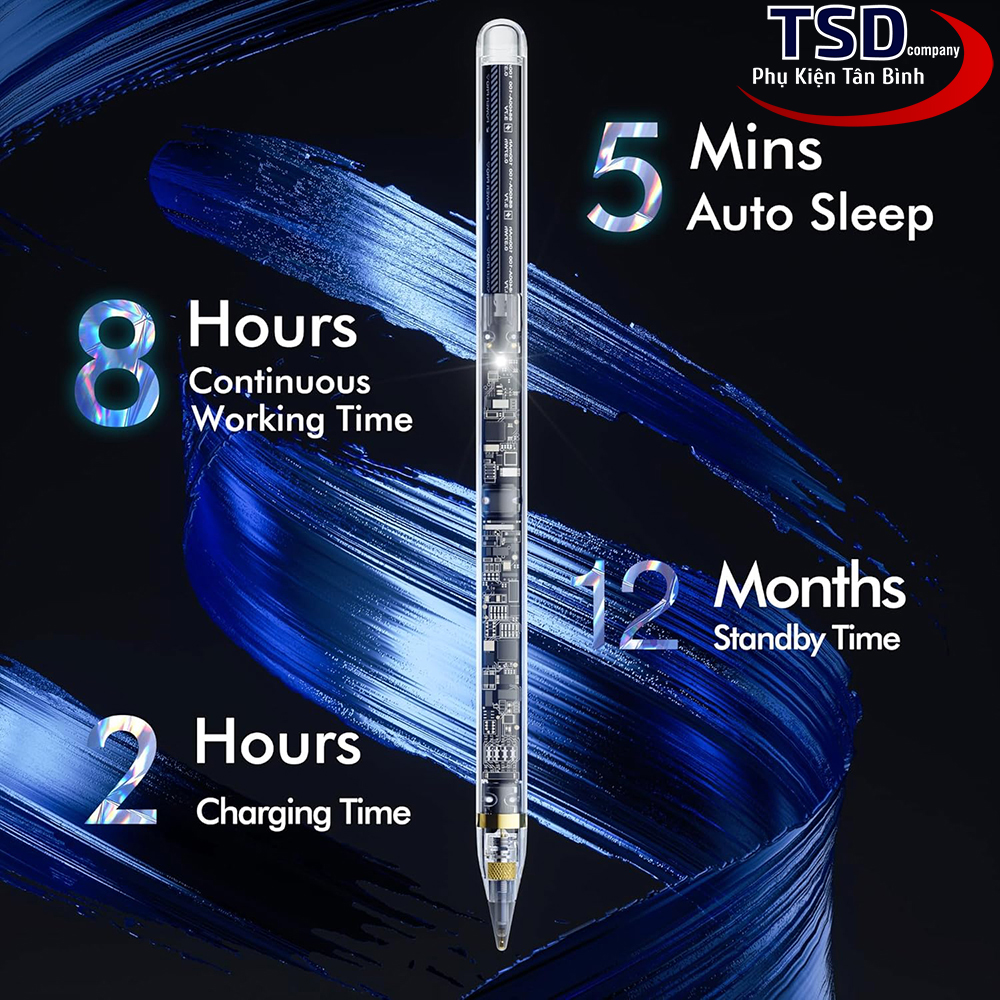 Một chiếc bút cảm ứng với ngòi bút nhỏ như bút thường, được trang bị các công nghệ hiện đại bậc nhất trên bút cảm ứng như khả năng phân biệt tay và ngòi bút, cảm biến độ nghiêng của ngòi bút, không có độ trễ... giúp cho việc thao tác và phát hoạ trên iPad được thuận tiện, linh hoạt và dễ dàng hơn đáng kể so với việc sử dụng bằng tay.