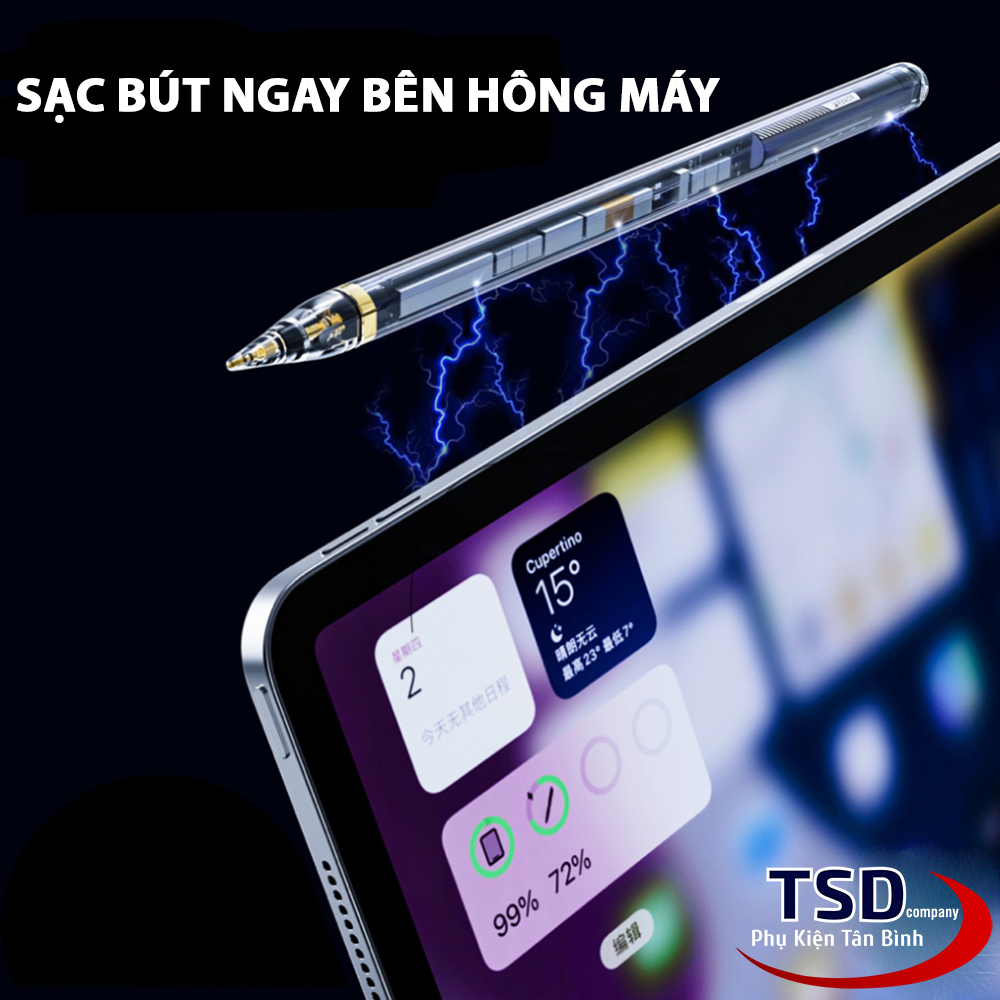 Hỗ trợ sạc từ tính tiện lợi, đặt vào bên hông của ipad. Hoặc bạn có thể sạc qua các đế sạc không dây cao cấp có hỗ trợ sạc PD.