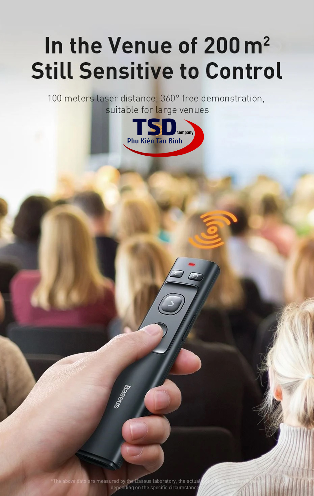 Bút trình chiếu Baseus còn được tích hợp công nghệ không dây hiện đại cho độ nhạy cao RF2.4G, tránh nhiễu hiệu quả, ổn định khoảng cách xa đến 100m. Giúp người dùng có thể kiểm soát tốt slideshow trong không gian đến 200m², hỗ trợ tối ưu trong mọi nhu cầu sử dụng từ văn phòng đến lớp học.