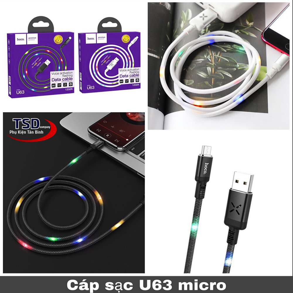 Cáp Hoco U63 Chính Hãng Phát Sáng Theo Nhạc ( Micro - Lightning - TypeC )