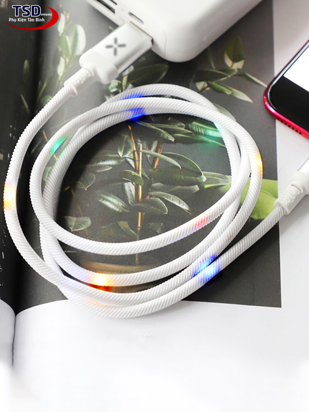 - Những hạt đèn led nhỏ đủ màu sắc được tích hợp rải đều trong dây sạc sẽ cho khả năng phát sáng khi bạn đang truyền dữ liệu hoặc sạc pin, nhìn giống như 1 dây đèn nháy vô cùng bắt mắt.