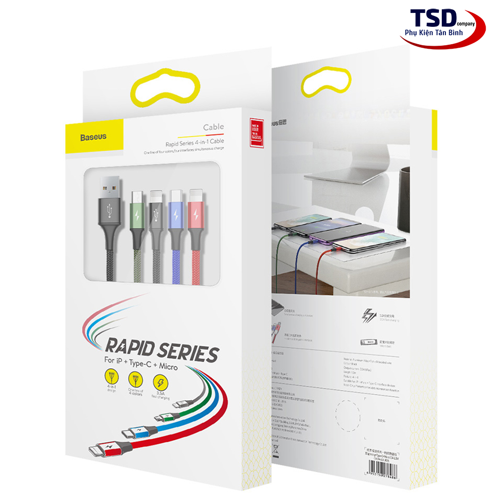 Cáp Sạc Đa Năng 4 Cổng Baseus Rapid Series Chính Hãng