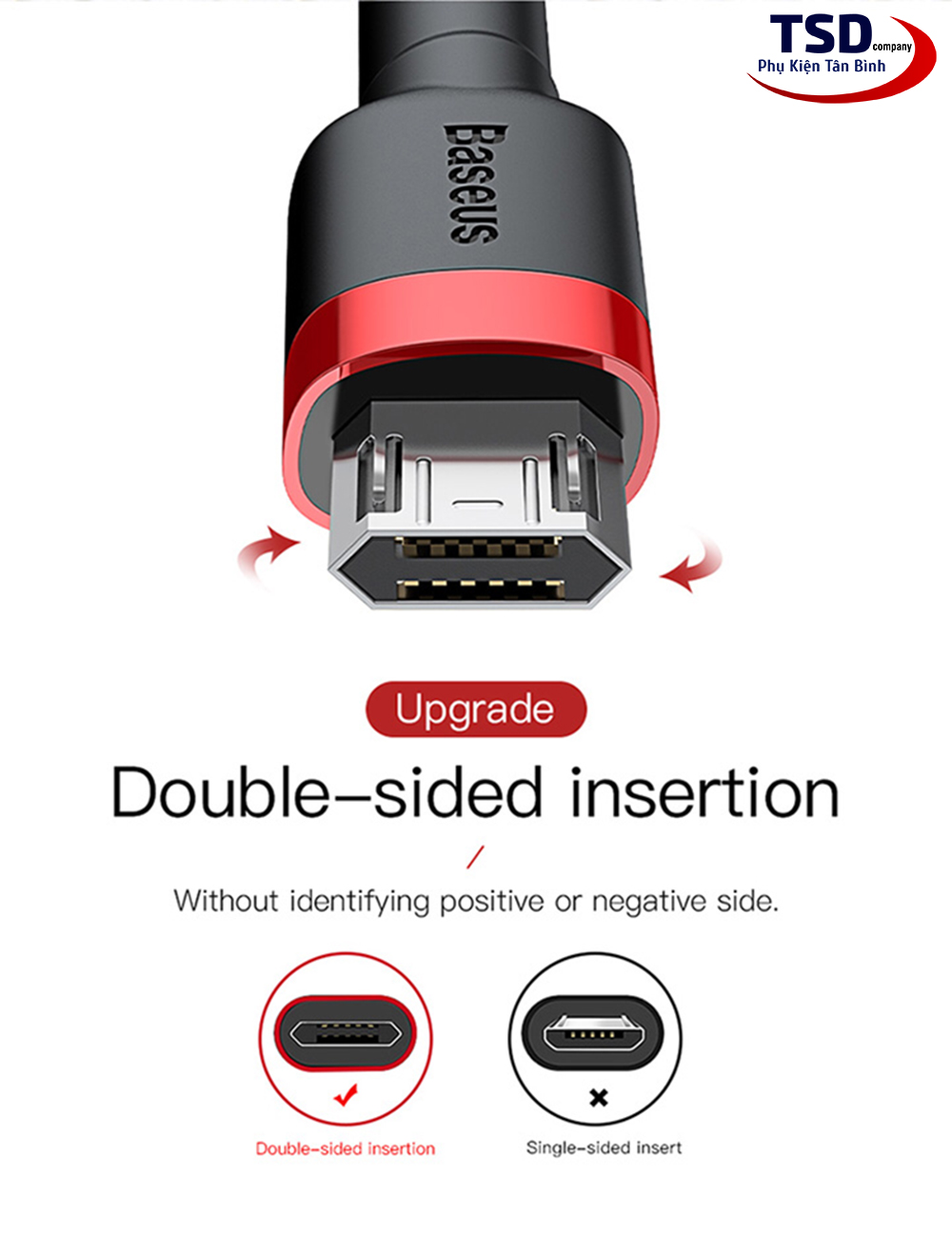 Thiết kế đầu cắm kiểu mới, cắm được cả 2 chiều, không lo sợ chuyện cắm lộn chiều nữa.