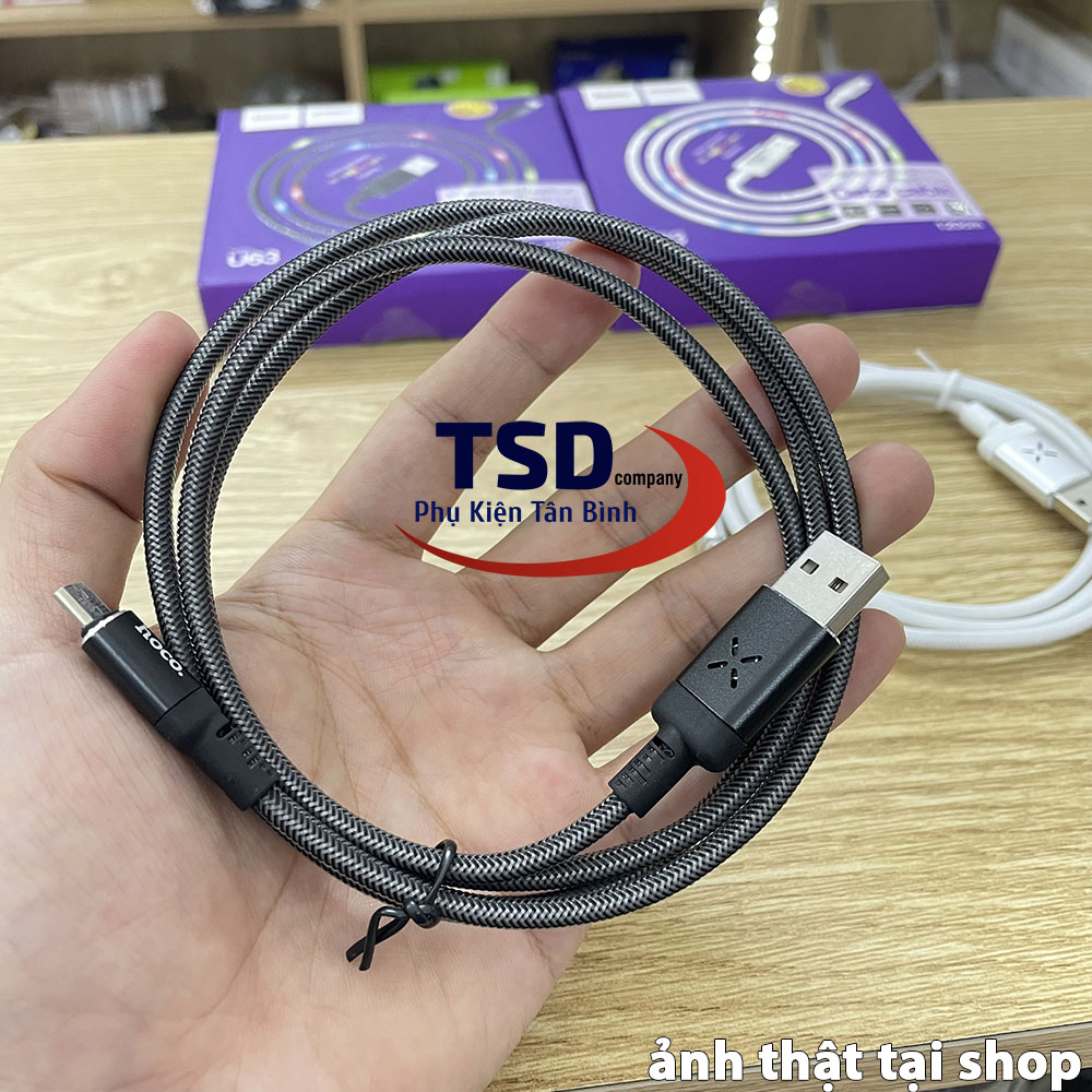 Cáp USB Hoco U63 Micro sở hữu thiết kế trẻ trung, thanh lịch với hai phiên bản màu đen và trắng. Trong quá trình sử dụng lâu dài cũng không xảy ra vấn đề rối dây hay đứt, gãy gập dẫn đến hư hỏng. Để tránh được tình trạng này, cáp sạc được gia công từ chất liệu TPE và lưới dệt cao cấp, mềm dẻo, vừa bảo vệ tốt chơi dây cáp, vừa tăng độ bền cho sản phẩm.