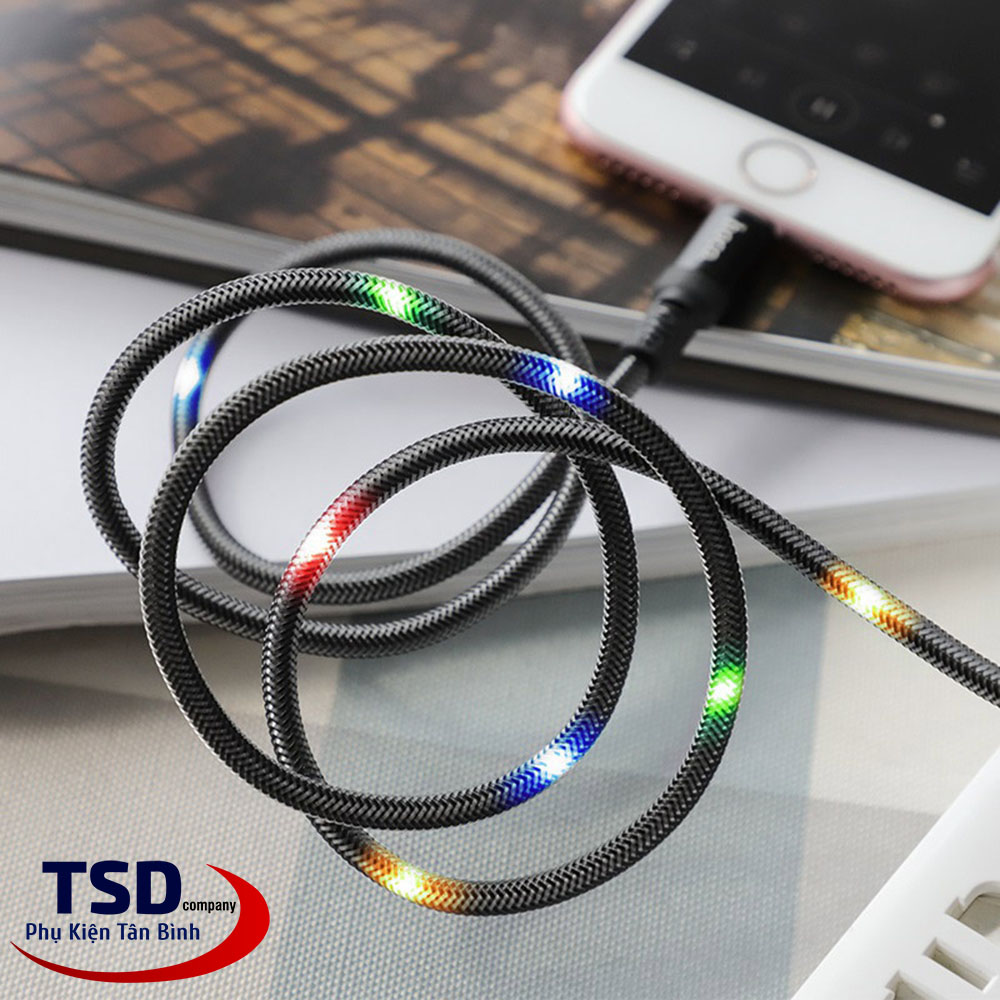 Những hạt đèn led nhỏ đủ màu sắc được tích hợp rải đều trong dây sạc sẽ cho khả năng phát sáng khi bạn đang truyền dữ liệu hoặc sạc pin, nhìn giống như 1 dây đèn nháy vô cùng bắt mắt.