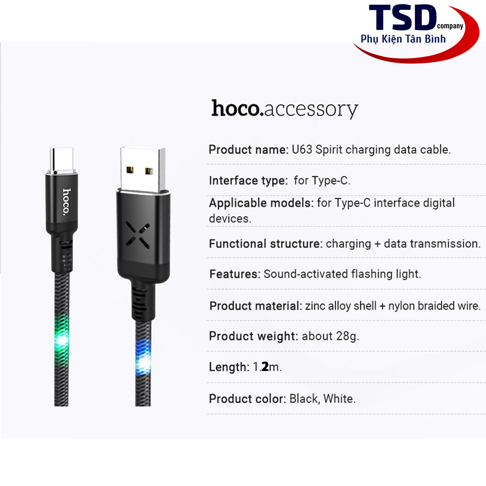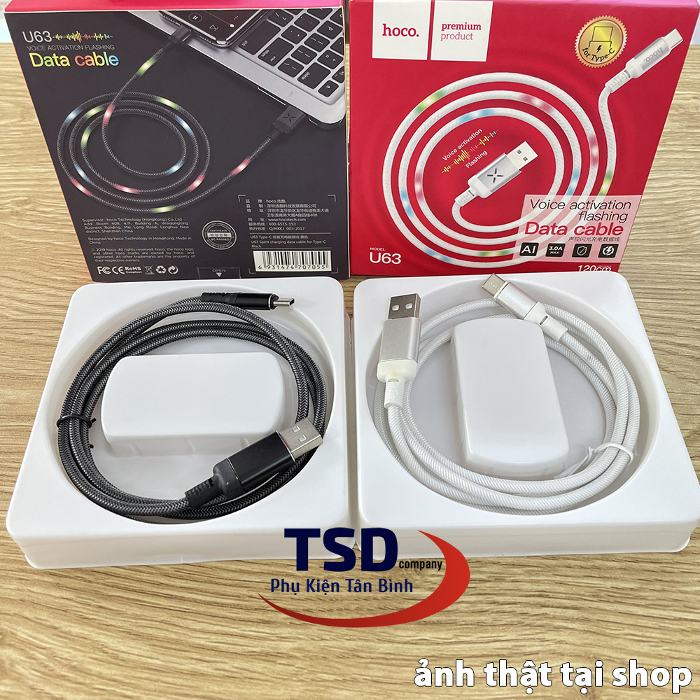Cáp Sạc Nhanh Hoco U63 Cổng Type C Chính Hãng Phát Sáng Theo Nhạc