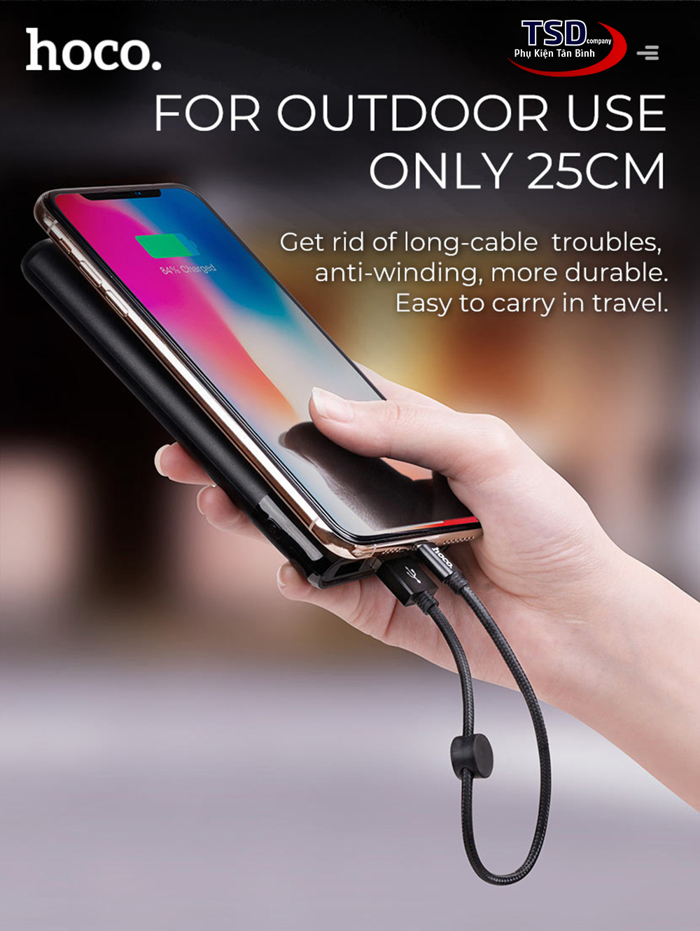 Tính tiện dụng mà Cáp Hoco X35 thể hiện ở chỗ dây cáp chỉ dài 0.25 mét. Phù hợp sử dụng sạc với pin dự phòng hoặc kết nối với các thiết bị tại chỗ. Hơn nữa, sản phẩm còn được trang bị kẹp tròn thu gọn, giúp nơi làm việc, bàn học của bạn được gọn gàng, ngăn nắp hơn khi sử dụng. Nhờ rút ngắn kích thước dây mà cấp chỉ còn 10g, quá nhẹ để cho vào túi cá nhân đem theo khi ra ngoài, đi chơi hoặc đi làm đều dễ dàng.,
