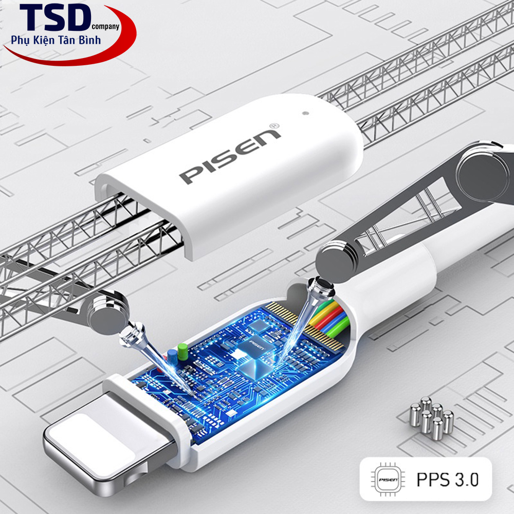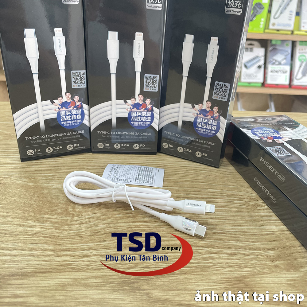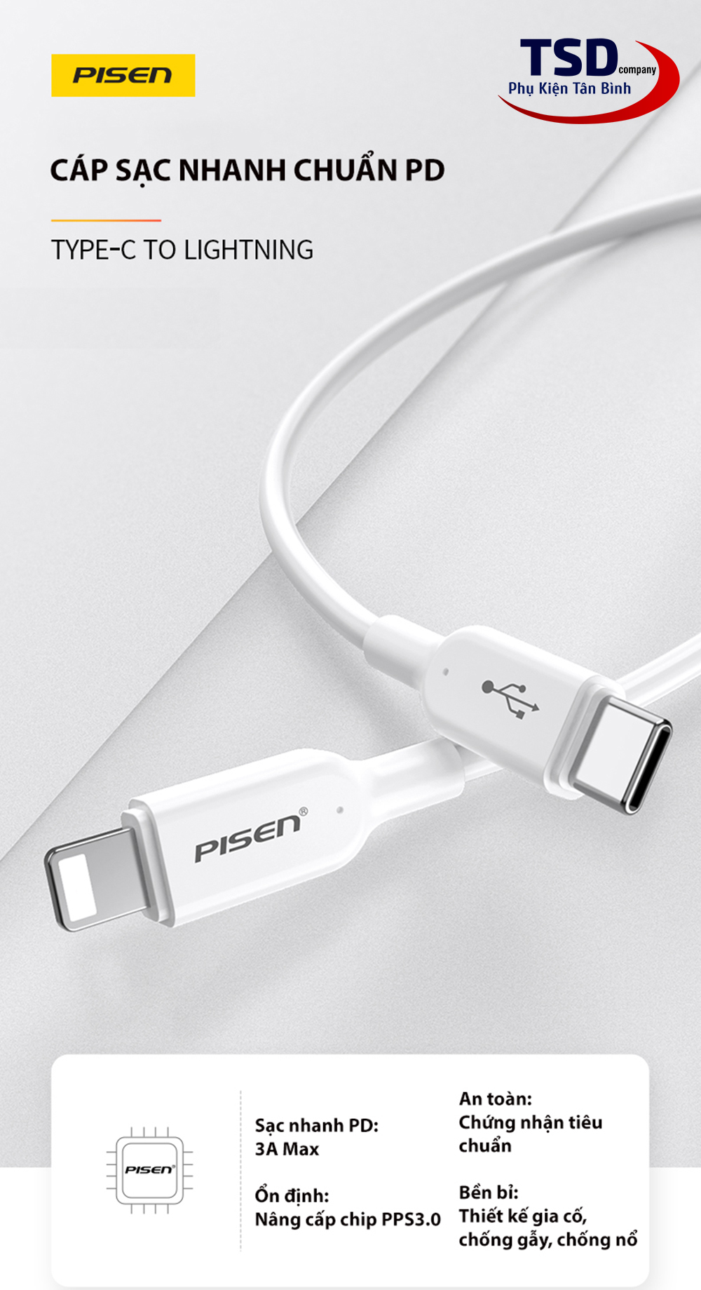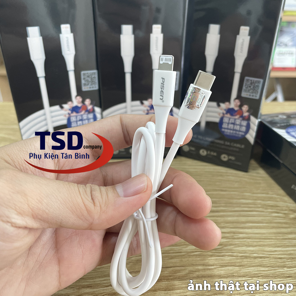 Cáp sạc Pisen Lightning Quick & Type-C 3A (Type-C to Lightning ) CL-PD-1000 được cấu tạo từ lõi đồng nguyên chất mạ thiếc, sử dụng vật liệu cách nhiệt cao cấp bọc ngoài tạo sự an toàn tối đa cho người sử dụng và các thiết bị kết nối. Sản phẩm có màu trắng, chiều dài 1m để người dùng có thể vừa cắm kết nối vừa có thể thực hiện các thao tác khác trên chiếc điện thoại di động của mình.