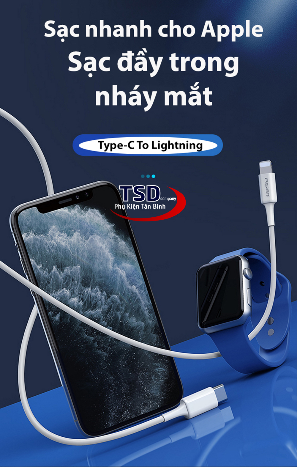 Cáp sạc Pisen Lightning Quick & Type-C 3A (Type-C to Lightning ) CL-PD-1000 hoàn toàn phù hợp với hệ thống các sản phẩm của Apple sử dụng chân sạc lightning.