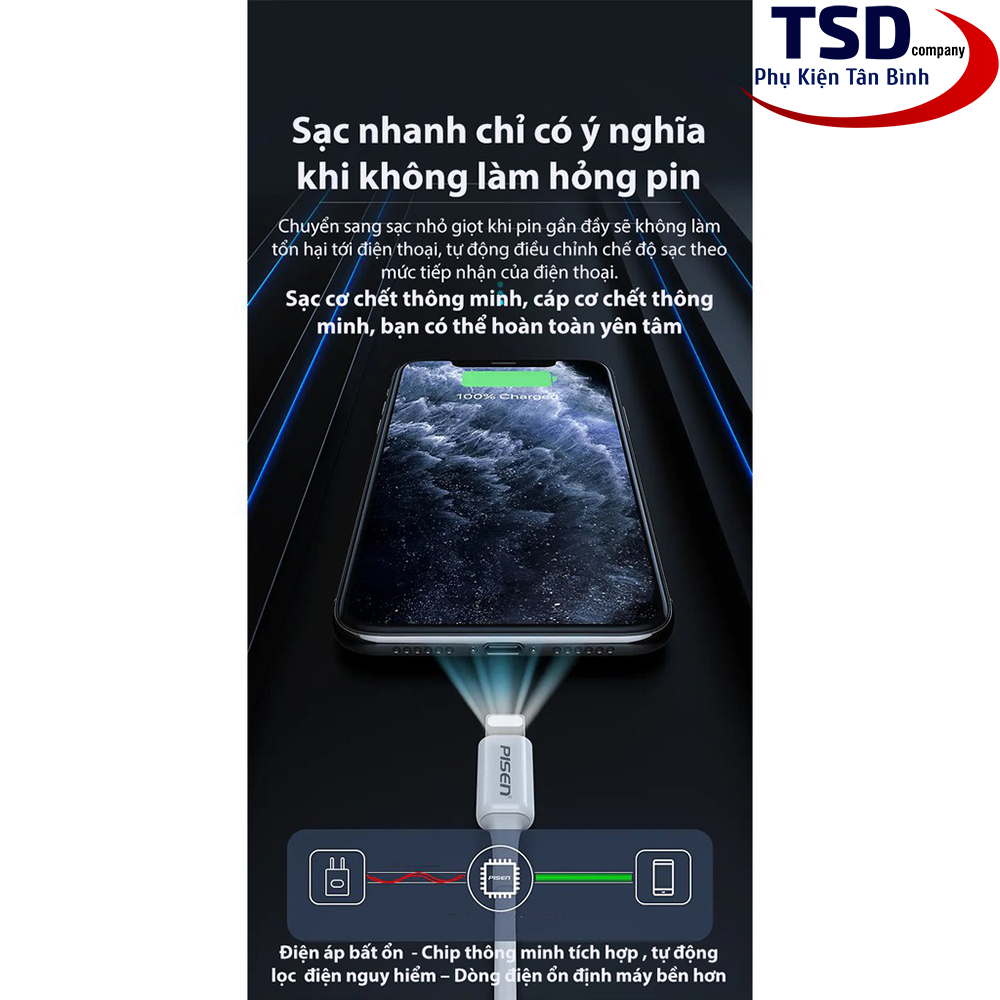- Cáp Pisen iPhone, iPad Chính Hãng Dài 1 Mét
