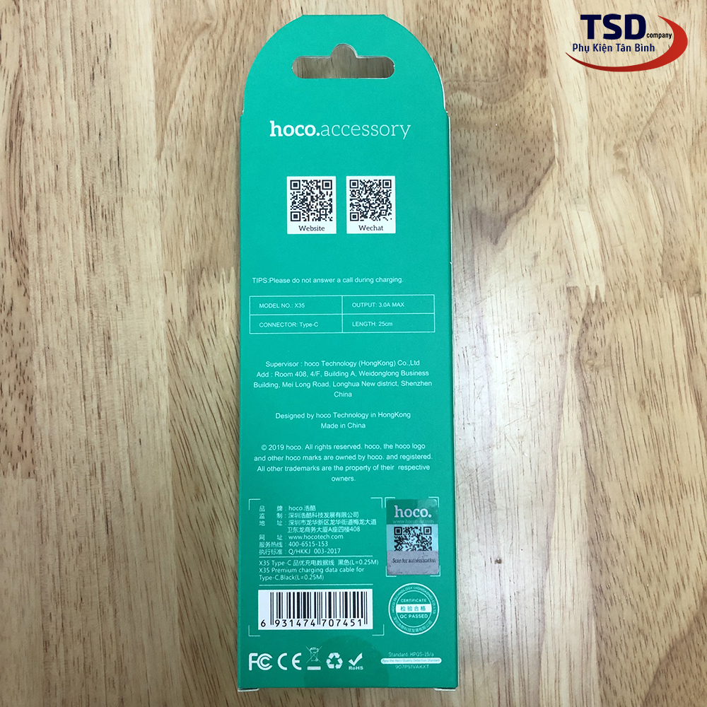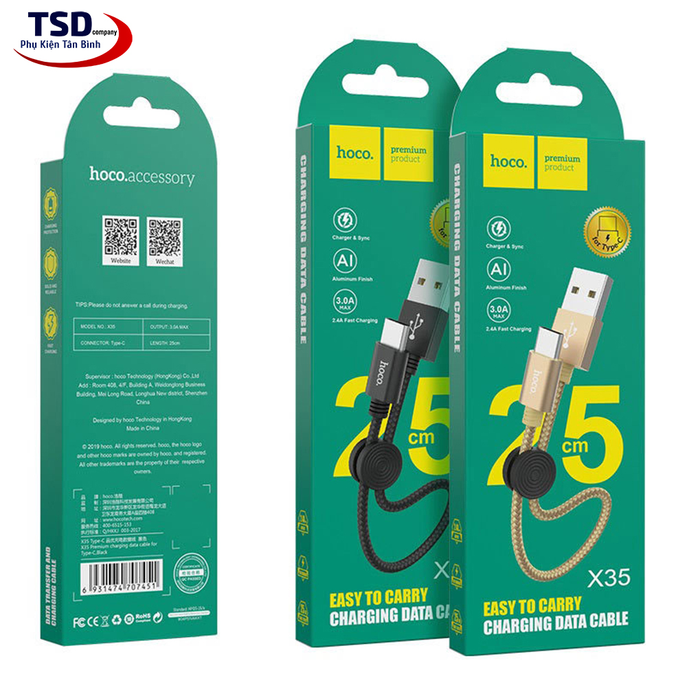 Cáp Sạc Nhanh Type C Hoco X35 Dài 25CM Chính Hãng