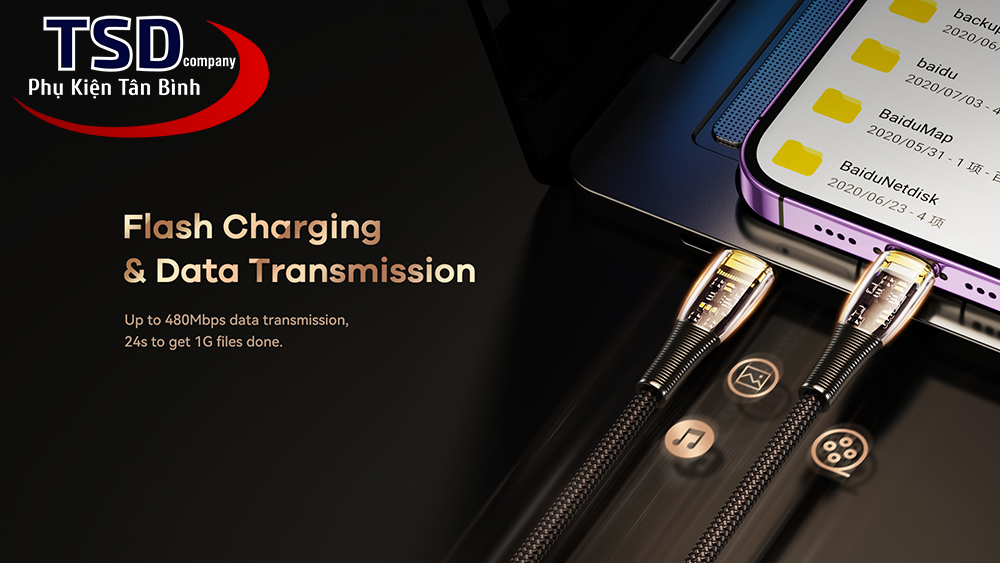 - Không chỉ xuất sắc ở khả năng cung cấp năng lượng, Remax RC-061cl còn có khả năng truyền dữ liệu từ máy tính sang điện thoại hoặc ngược lại. Với tốc độ truyền 480Mb/s, các tệp tin dung lượng lớn 1GB có thể được truyền nhanh chóng trong khoảng 24 giây. Nhờ vậy mà việc sao chép các file video, hình ảnh, dữ liệu diễn ra nhanh và ổn định hơn. Trong quá trình truyền, cáp Remax RC-061cl vẫn hỗ trợ sạc đồng thời.