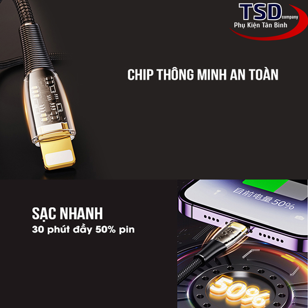 - Cáp Sạc Nhanh PD 20W Crystal Shine Type C To Lightning Baseus Fast Charge Dài 1.2 Mét Chính Hãng
