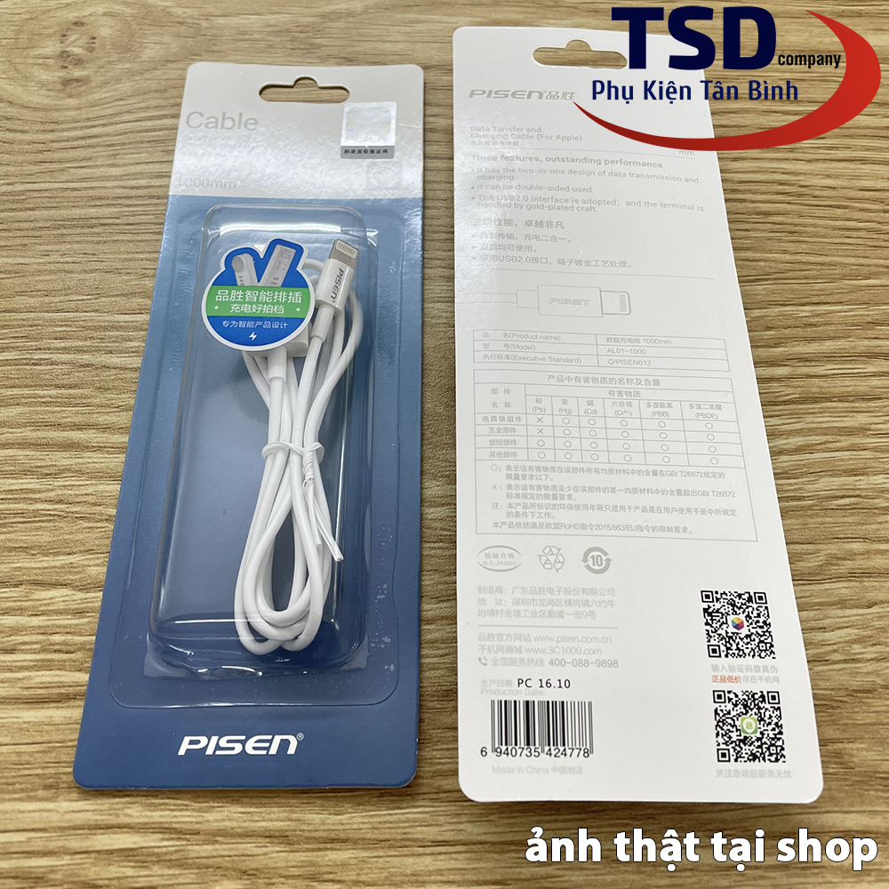 - Cáp Sạc Pisen iPhone cổng Lightning sử dụng cho iPhone 5 trở lên & các dòng iPad mới về sau.