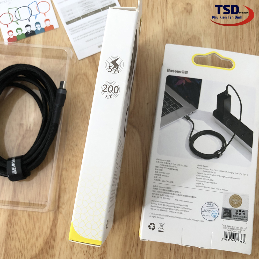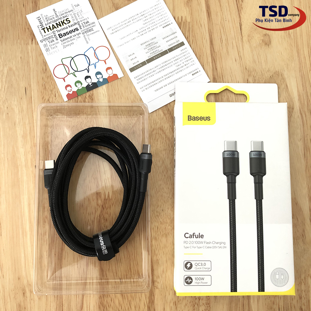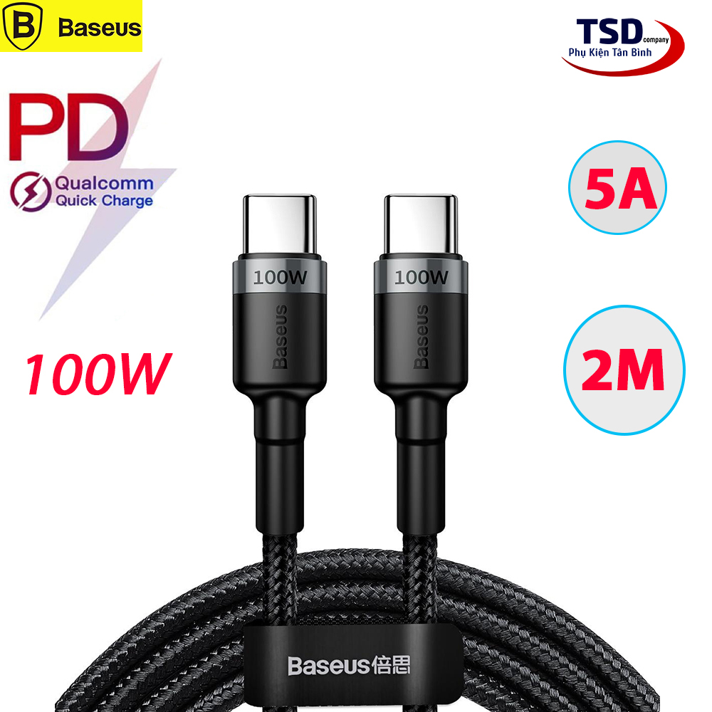 Cáp Type C to Type C Sạc Nhanh PD 2.0 100W Quick Charge 3.0 Dài 2 Mét Chính Hãng Baseus