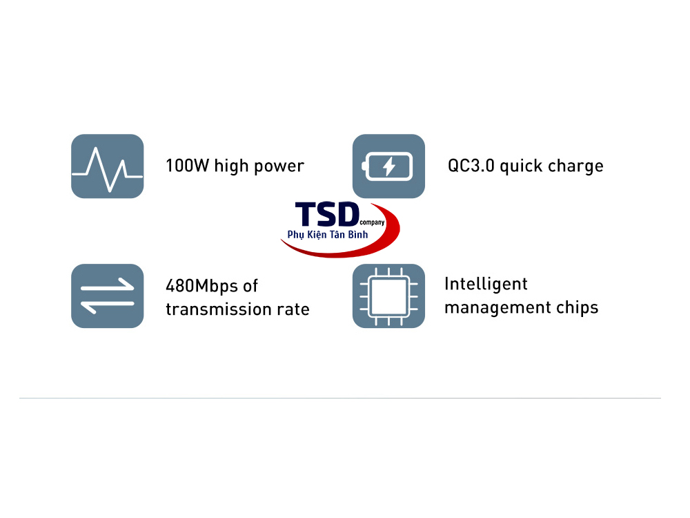 - Nhờ chuẩn sạc PD2.0 100W cáp có thể sạc rất tốt cho các điện thoại, máy tính bảng, Macbook và một số dòng laptop windows được trang bị cổng Type C như Dell, HP, Thinkpad,..