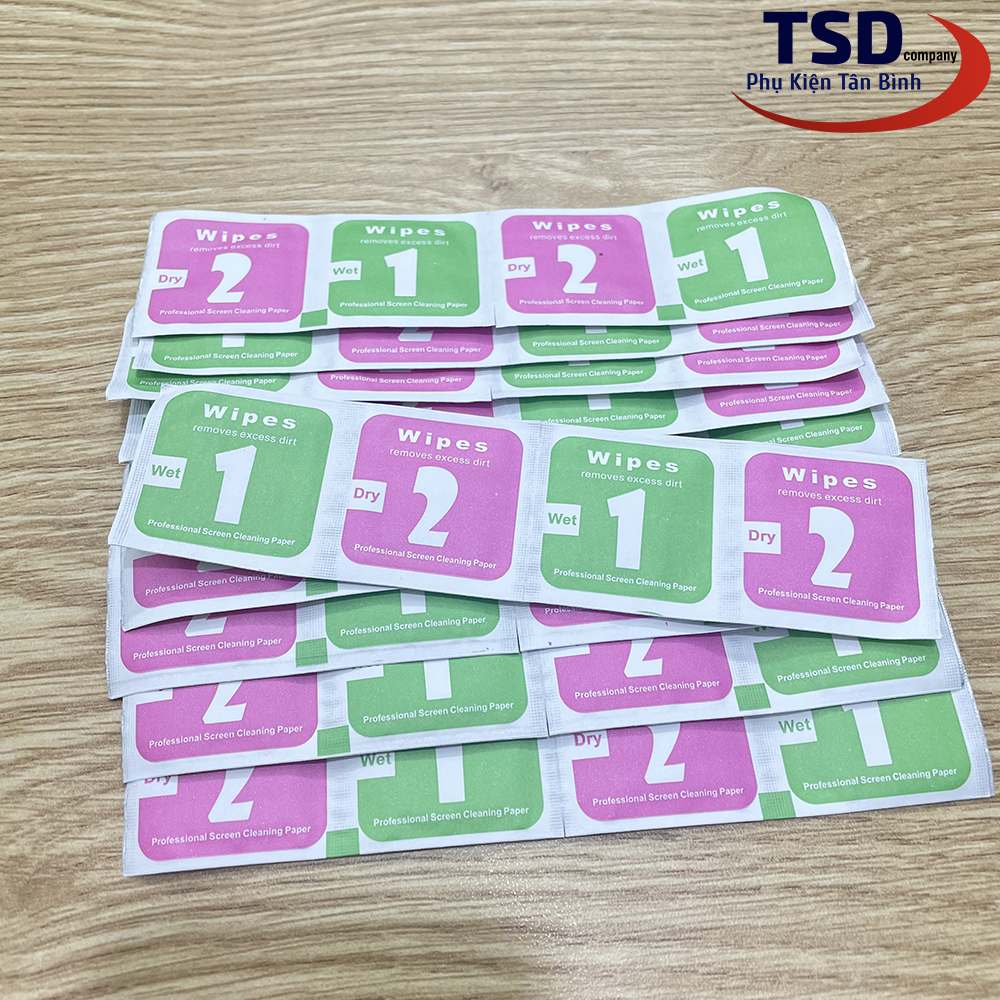 Dùng để lau màn hình, lấy bụi. Giúp dán cường lực điện thoại chuẩn và ít bị lỗi. Đặc biệt giấy ướt tẩm cồn và hoạt tính nano giúp lau sạch hơn. Dễ dán hơn.
