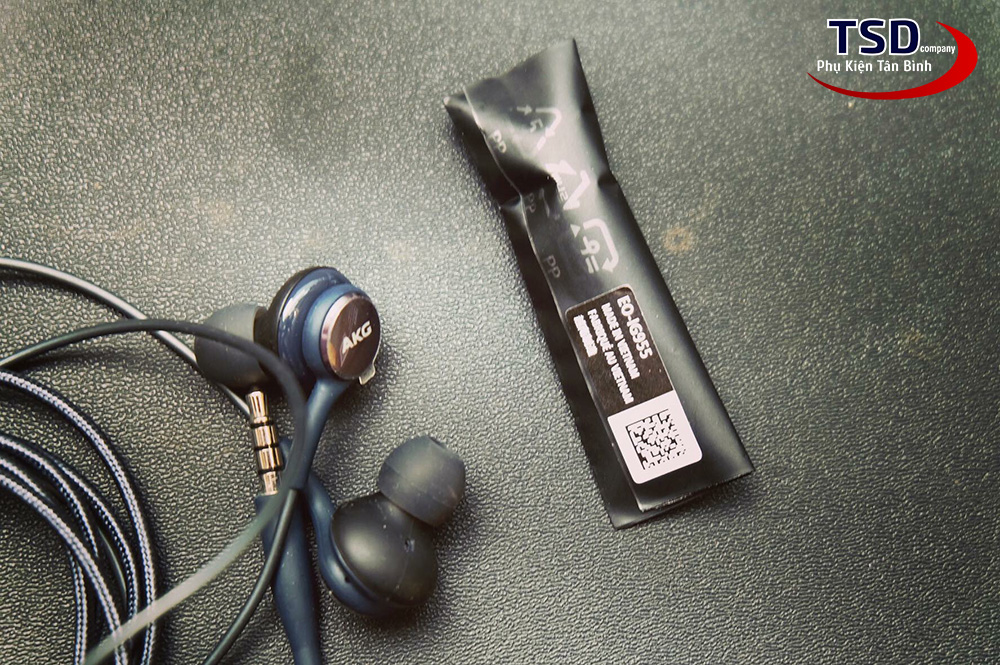 - Chúng ta có logo AKG nổi trội ở phần mặt ngoài earbuds. Phần housing nhựa bóng chứa củ tai thông suốt với phần vòi dẫn âm đặt nghiêng về một phía – kiểu thiết kế khá phổ biến thường bắt gặp ở các mẫu tai nghe lẽ thường. So với một vài chiếc tai nghe kèm theo các điện thoại thông minh trước đây của Samsung nói riêng và nhiều hãng khác khái quát thì chiếc tai này có chất lượng hoàn toàn đẹp hơn hẳn.