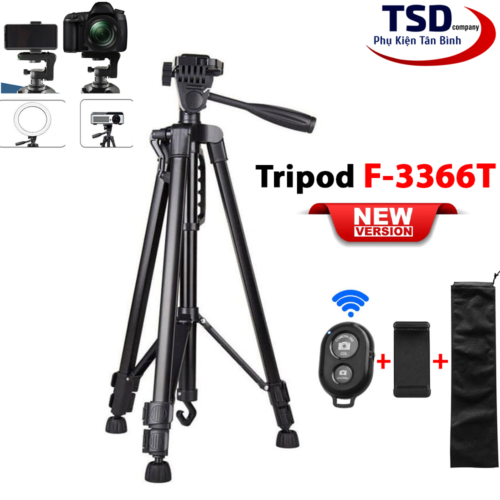 Chân giá đỡ máy ảnh Tripod F-3366T phiên bản mới có chiều cao 150cm, thiết kế cứng cáp, tripod 3366T là phụ kiện hỗ trợ quay phim, chụp ảnh chuyên nghiệp, có tích hợp tay cầm hỗ trợ quay video rất tiện lợi, phù hợp quay review, livestream, Vlog, Youtuber..
