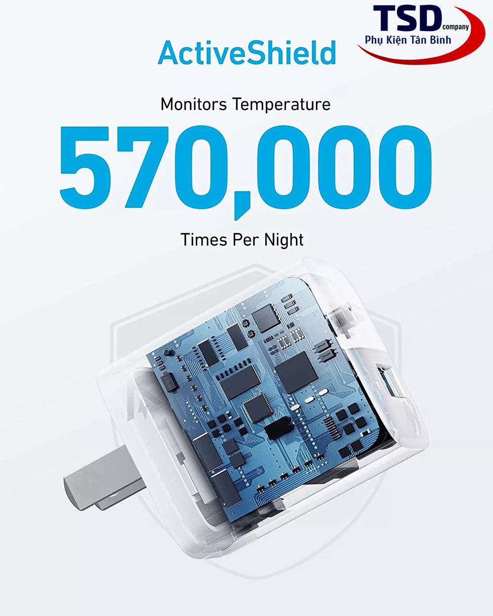 Được trang bị hệ thống an toàn ActiveShield của chúng tôi để tăng cường khả năng bảo vệ. Cảm biến nhiệt độ tự động theo dõi liên tục nhiệt độ và Chip chỉnh nguồn điều chỉnh công suất đầu ra để bảo vệ thiết bị được sạc an toàn.