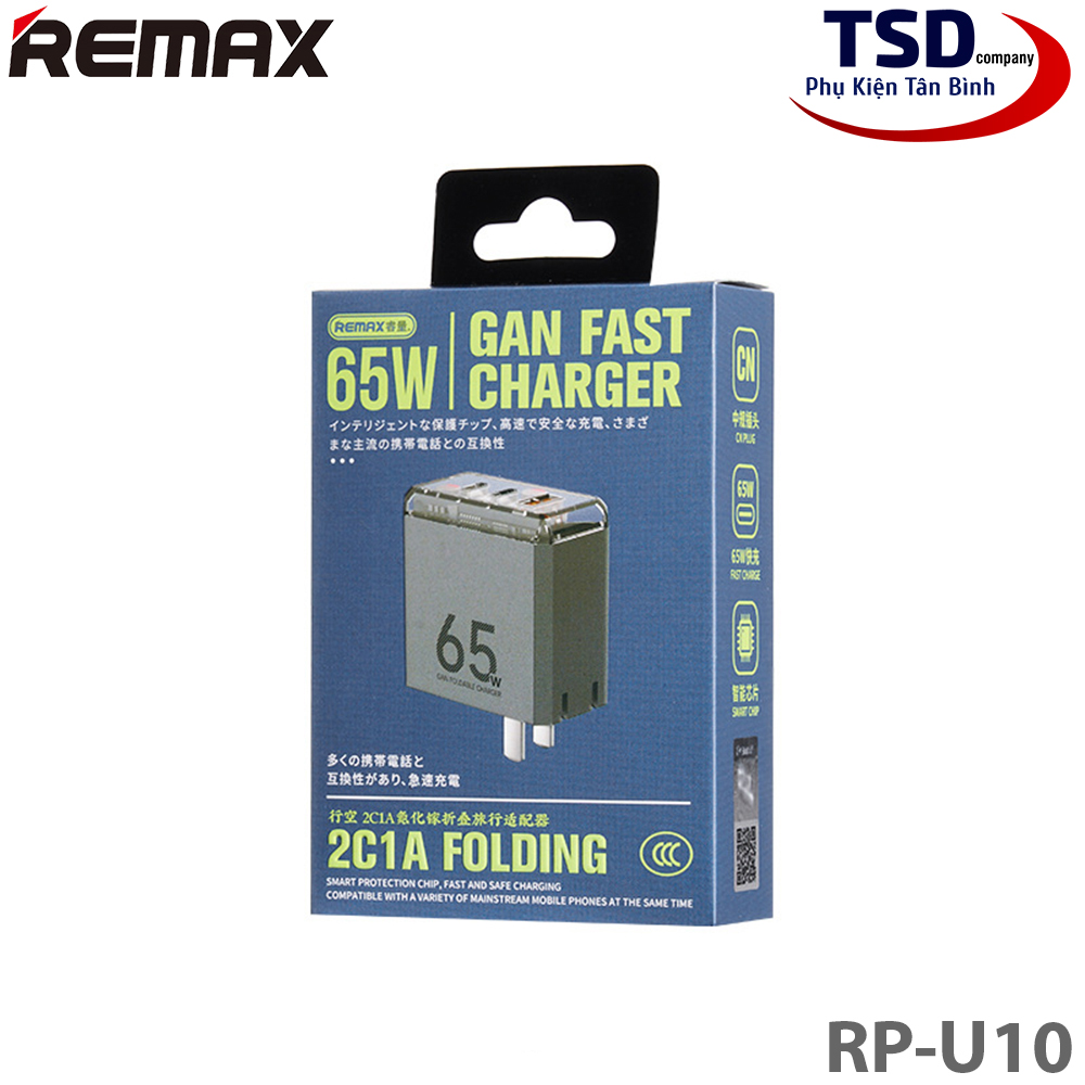 - Củ Sạc Nhanh 3 Cổng GaN 65W Remax RP-U100 Chính Hãng