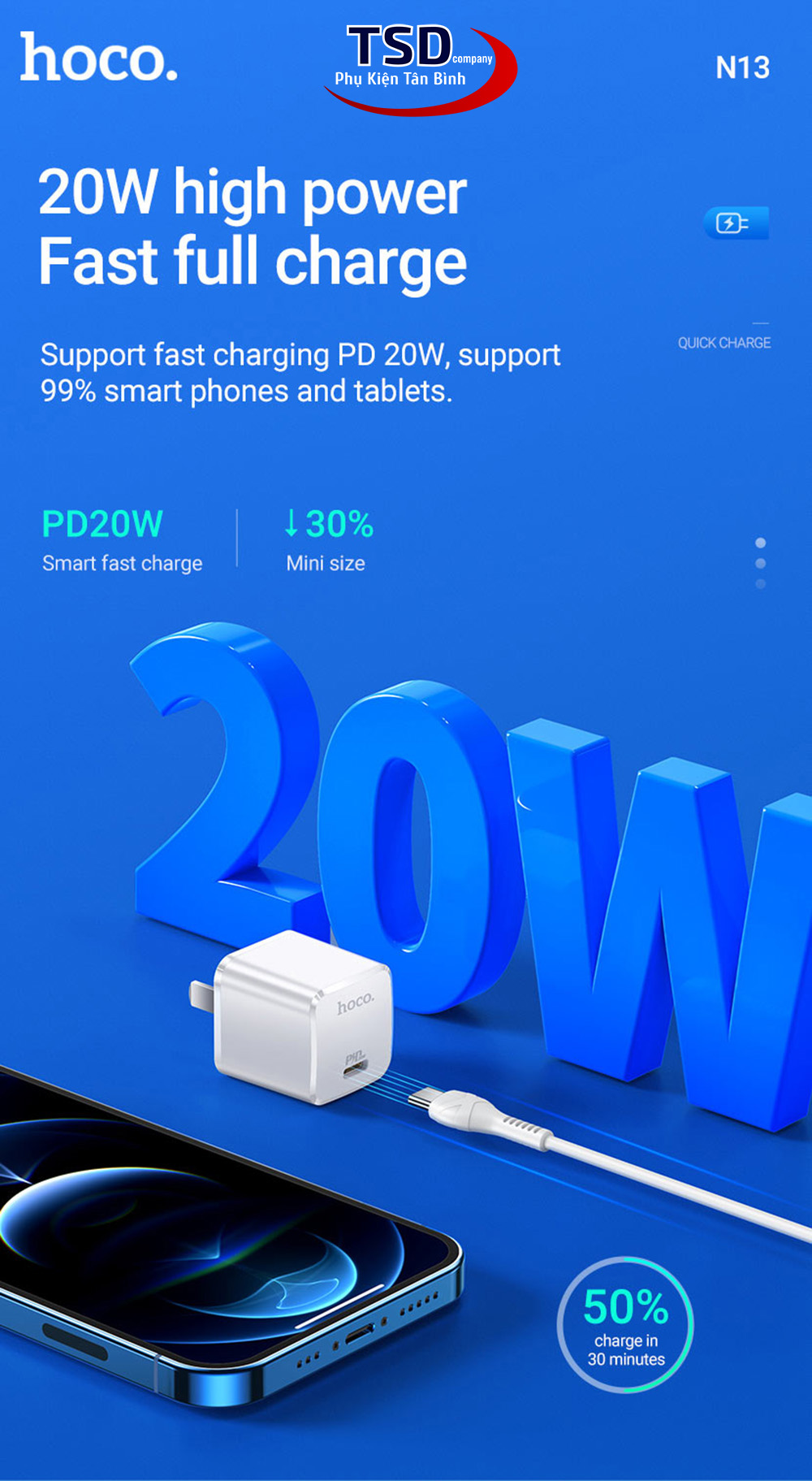SẠC Hoco N13 PD 20W – CÔNG NGHỆ SẠC NHANH VỚI CÔNG XUẤT 20W MẠNH MẼ, HỖ TRỢ CẢ QC3.0