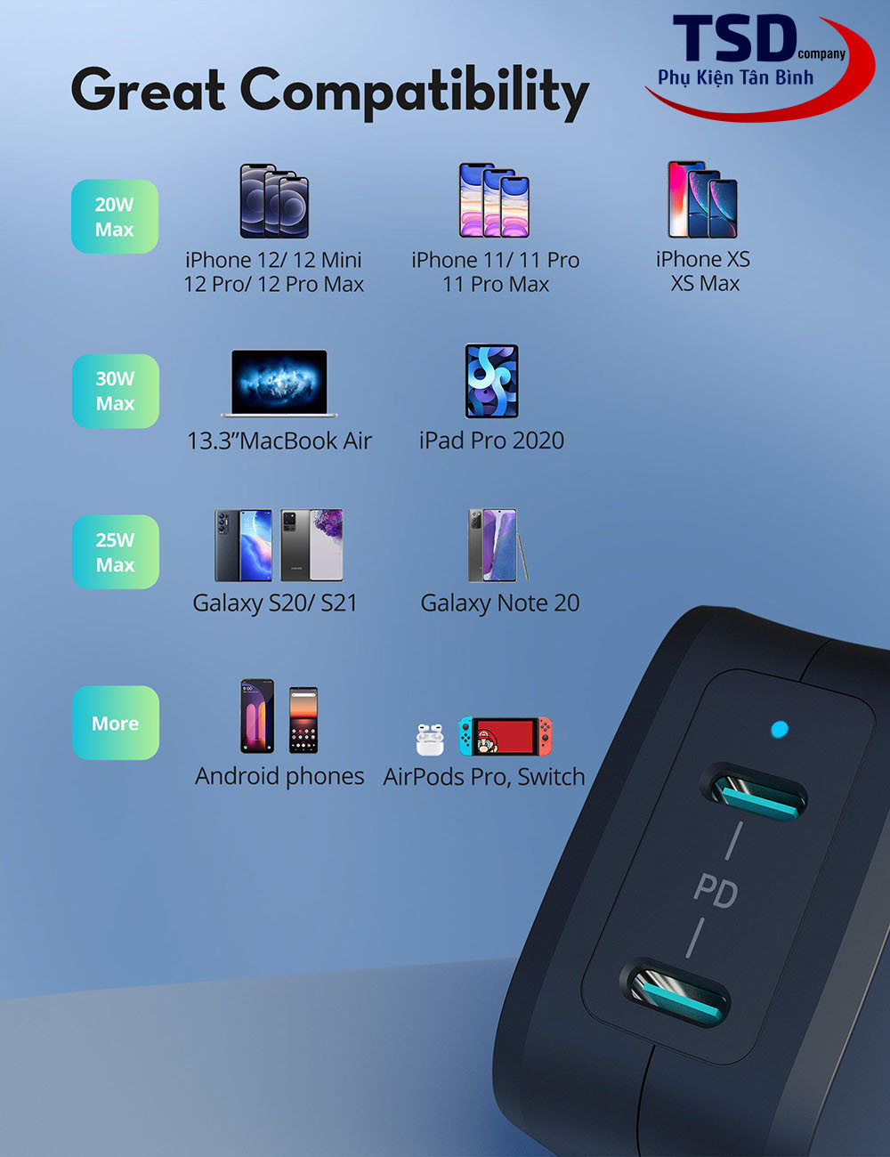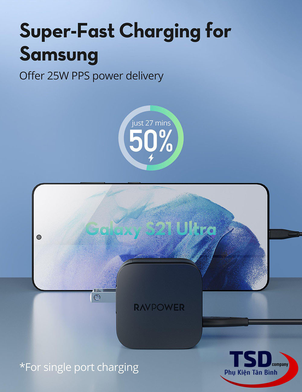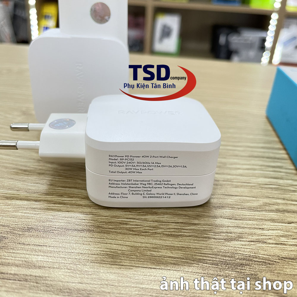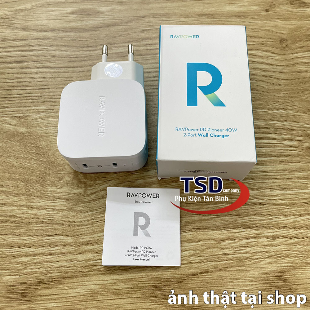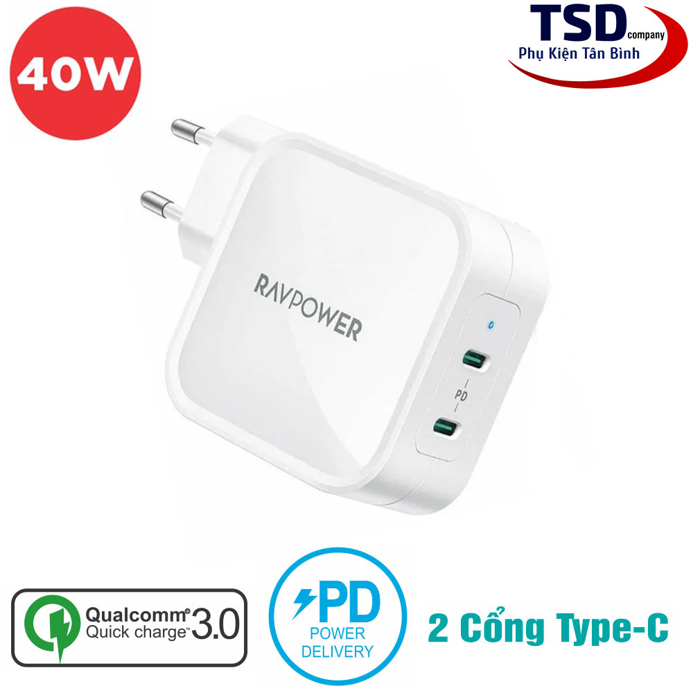 - Sạc nhanh tất cả các thiết bị của bạn, từ điện thoại thông minh đến máy tính xách tay, với Củ Sạc Nhanh Ravpower 40W 2 Cổng USB-C Chính Hãng. Cung cấp tổng công suất 40W khi bạn sạc đồng thời hai thiết bị (20W cho mỗi cổng) và cung cấp 30W khi sạc qua một cổng, lý tưởng cho các thiết bị như bộ sạc iPad Pro và MacBook Air 13 inch.