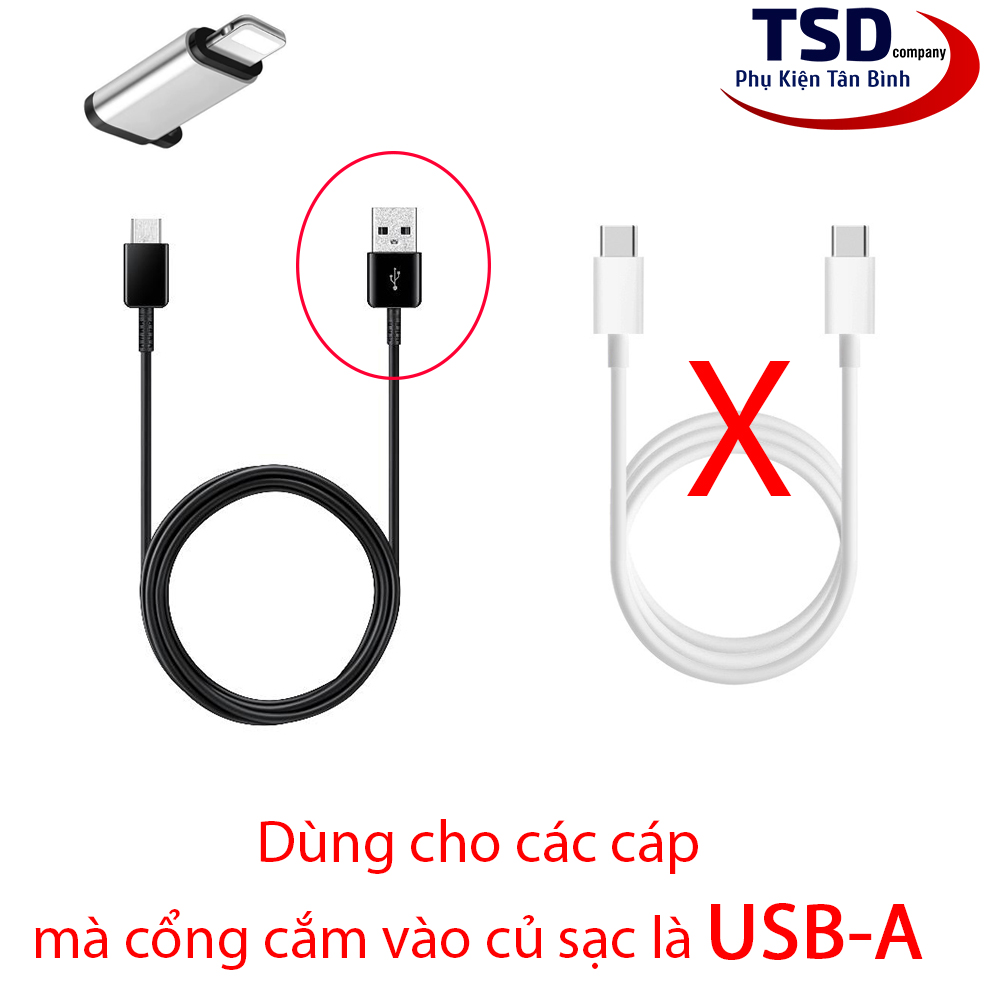 ** LƯU Ý: ĐẦU CHUYỂN NÀY DÙNG CHO CÁC CÁP MÀ ĐẦU CẮM VÀO CỦ SẠC LÀ CỔNG USB-A ( CỔNG USB LỚN ). KHÔNG HỖ TRỢ CÁP USB-C ( CỔNG NHỎ ).