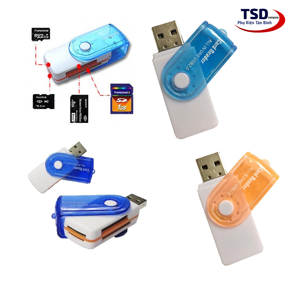 Đầu đọc thẻ nhớ đa năng giúp bạn dễ dàng đọc được tất cả các loại thẻ như: SD, Mini SD, MMC, Plus, SDHC MMC, MMC Turbo, RS – MMC Mobile, RS – MMC, Micro SD Card MS/M2.