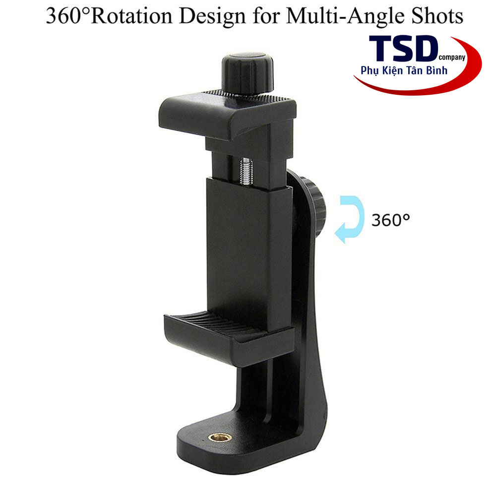Là gá ( đầu ) kẹp điện thoại xoay 360 độ vô cùng tiện lợi, bạn có thể điều chỉnh điện thoại ngang, dọc dễ dàng. Gá có núm xoay phía sau bạn chỉ việc xoáy chặt chốt để cố định điện thoại ở vị trí mong muốn.