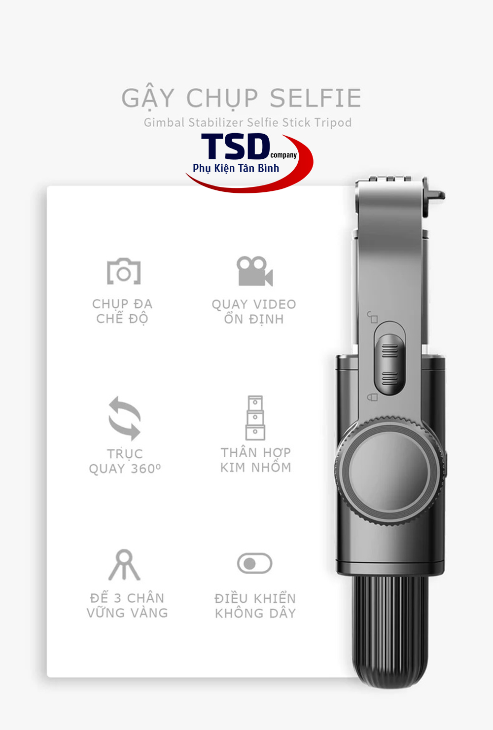 Sản phẩm không chỉ là một chiếc gậy selfie bình thường mà nó còn có chức năng như một chân máy và cũng là một chiếc giá đỡ để ổn định điện thoại. Với khả năng kéo dài đến 86 cm, bạn có thể dễ dàng chụp ảnh cả nhóm. Chiều dài khi xếp lại chỉ 20.5cm giúp dễ dàng mang theo mà không chiếm nhiều diện tích.