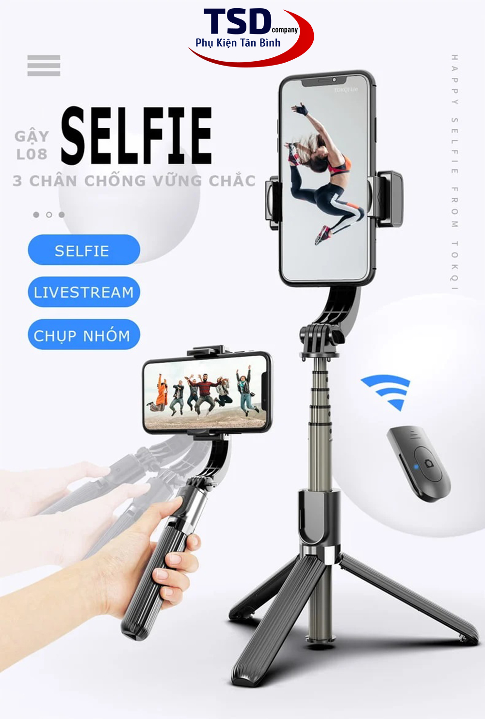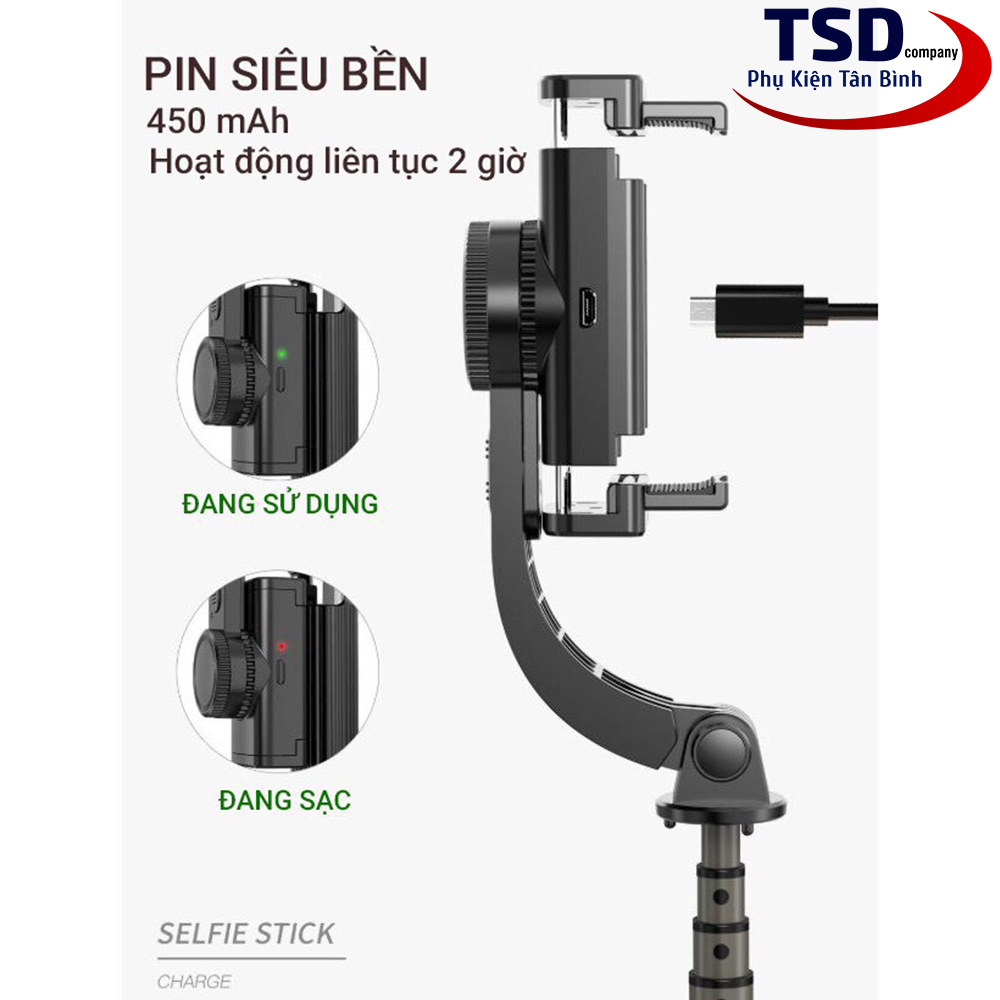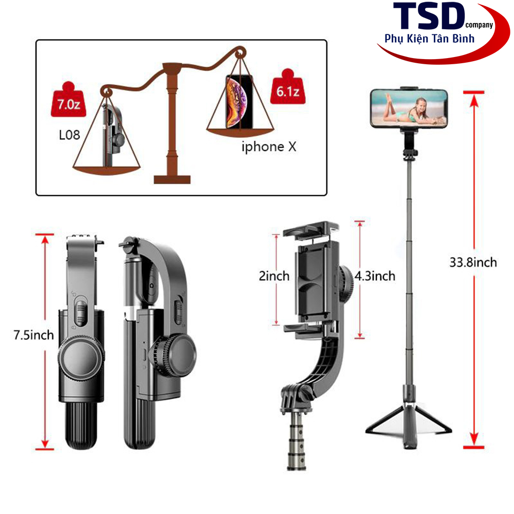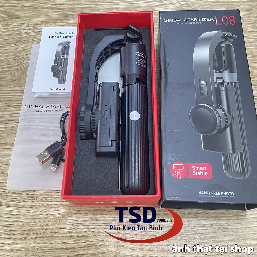 Gậy Selfie tích hợp Gimbal chống rung thông minh L08 Selfie Stabilizer là chiếc gậy tự sướng thông minh thế hệ mới với giá bình dân. Ngoài những tính năng hữu ích và tiện dụng như điều khiển camera từ xa bằng Bluetooth, chân đứng (tripod) có thể xếp gọn… sản phẩm còn được bổ sung thêm tính năng chống rung thông minh. Bạn có thể sử dụng gậy tripod L08 như một Gimbal để tạo ra những thước phim di động vô cùng chuyên nghiệp và ấn tượng chỉ với chiếc smartphone của mình.