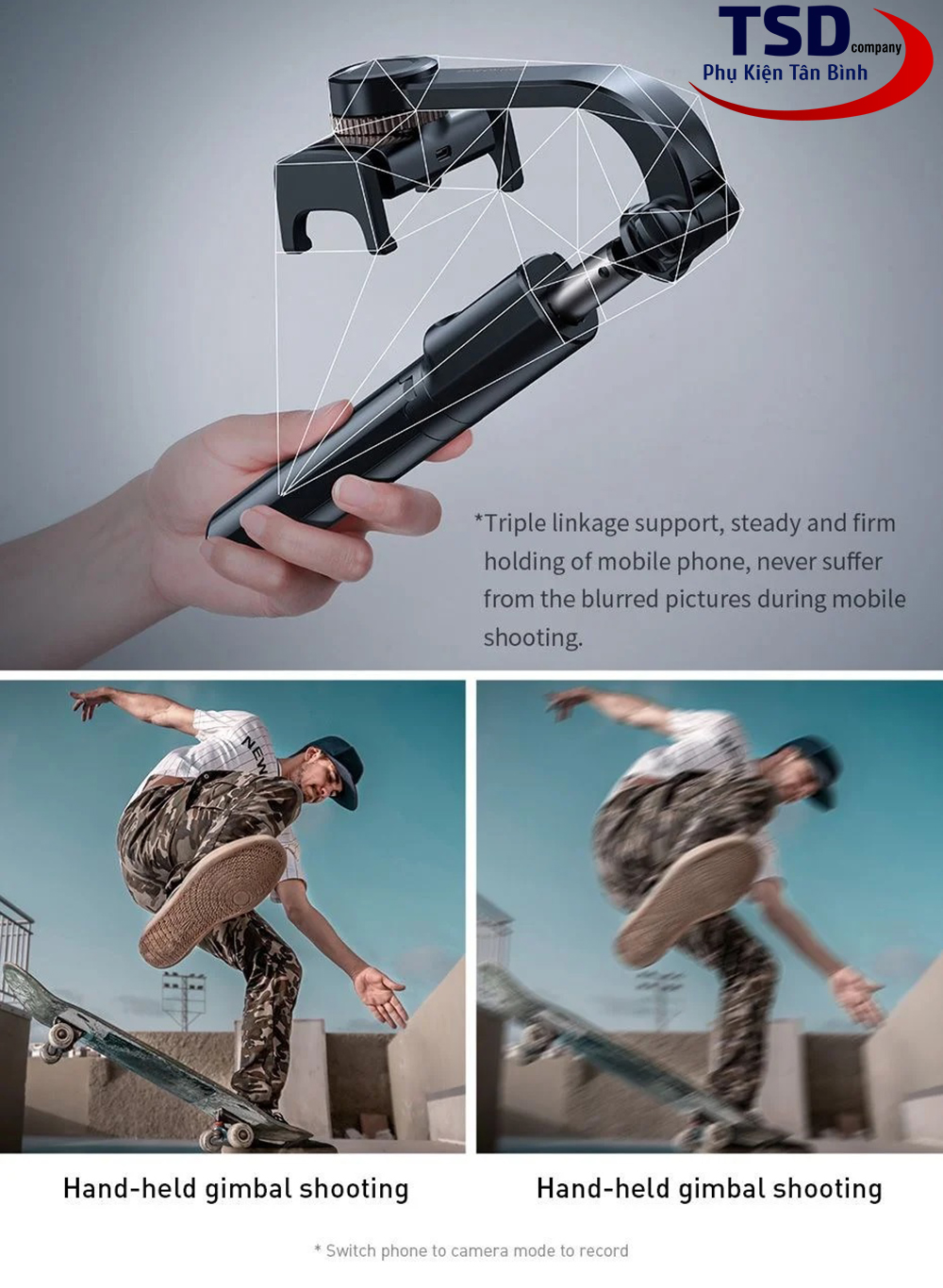 **Cách sử dụng phần trục chống rung: Bấm giữ nút nguồn để mở, bấm nút nguồn 1 lần là nó sẽ tự động chuyển đổi cân bằng ngang hoặc dọc cho điện thoại.