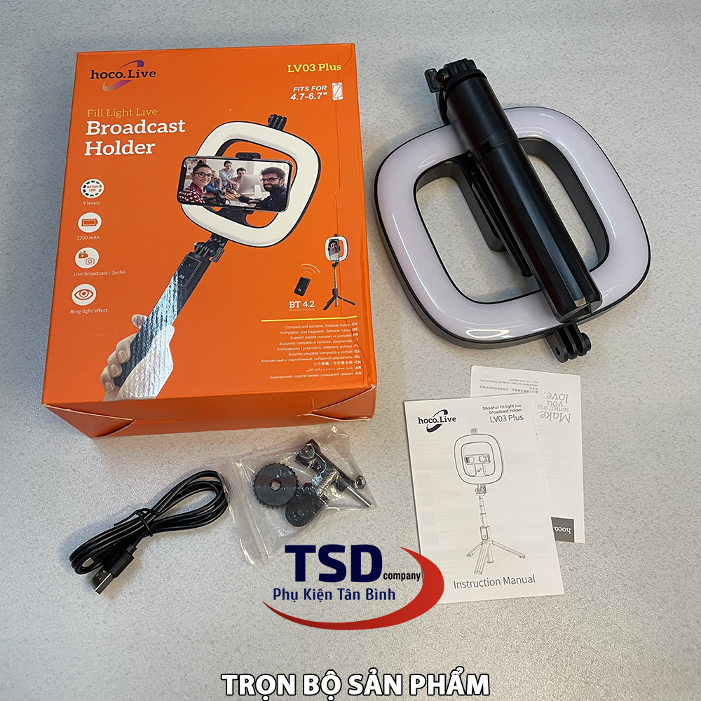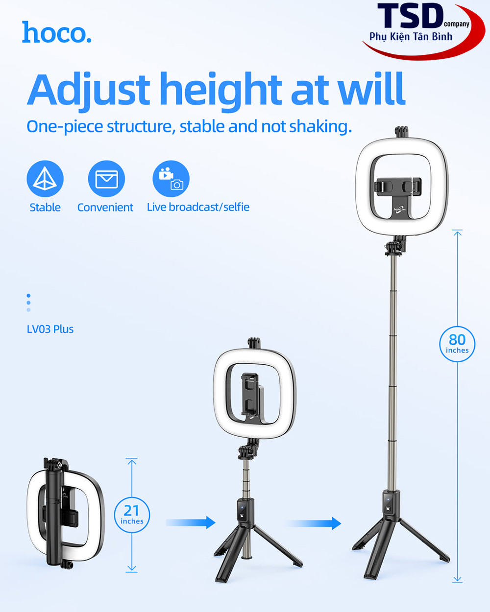 - Tóm lại, Gậy Tripod 3 Chân Bluetooth Tích Hợp Đèn Livestream Trợ Sáng Hoco LV03 Plus là một sản phẩm chất lượng và tiện ích, giúp bạn nâng cao chất lượng ánh sáng cho livestream và chụp ảnh selfie. Với chất liệu bền bỉ, đèn chiếu sáng đa chế độ, kích thước điện thoại linh hoạt và tính năng Bluetooth điều khiển từ xa, đây là một lựa chọn tuyệt vời cho những ai đam mê sáng tạo nội dung trực tuyến.