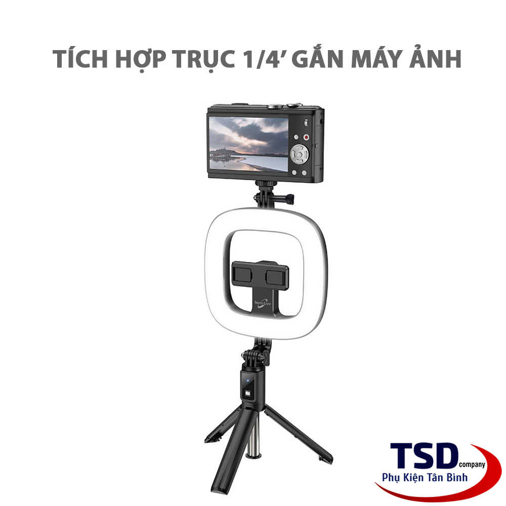 Bạn đam mê livestream hoặc chụp ảnh selfie chất lượng cao? Bạn đang tìm kiếm một giải pháp tiện ích để cải thiện ánh sáng và giữ vững vị trí của điện thoại di động? Không cần tìm kiếm thêm, Gậy Tripod 3 Chân Bluetooth Tích Hợp Đèn Livestream Trợ Sáng Hoco LV03 Plus từ Phụ Kiện Tân Bình sẽ đáp ứng mọi nhu cầu của bạn.