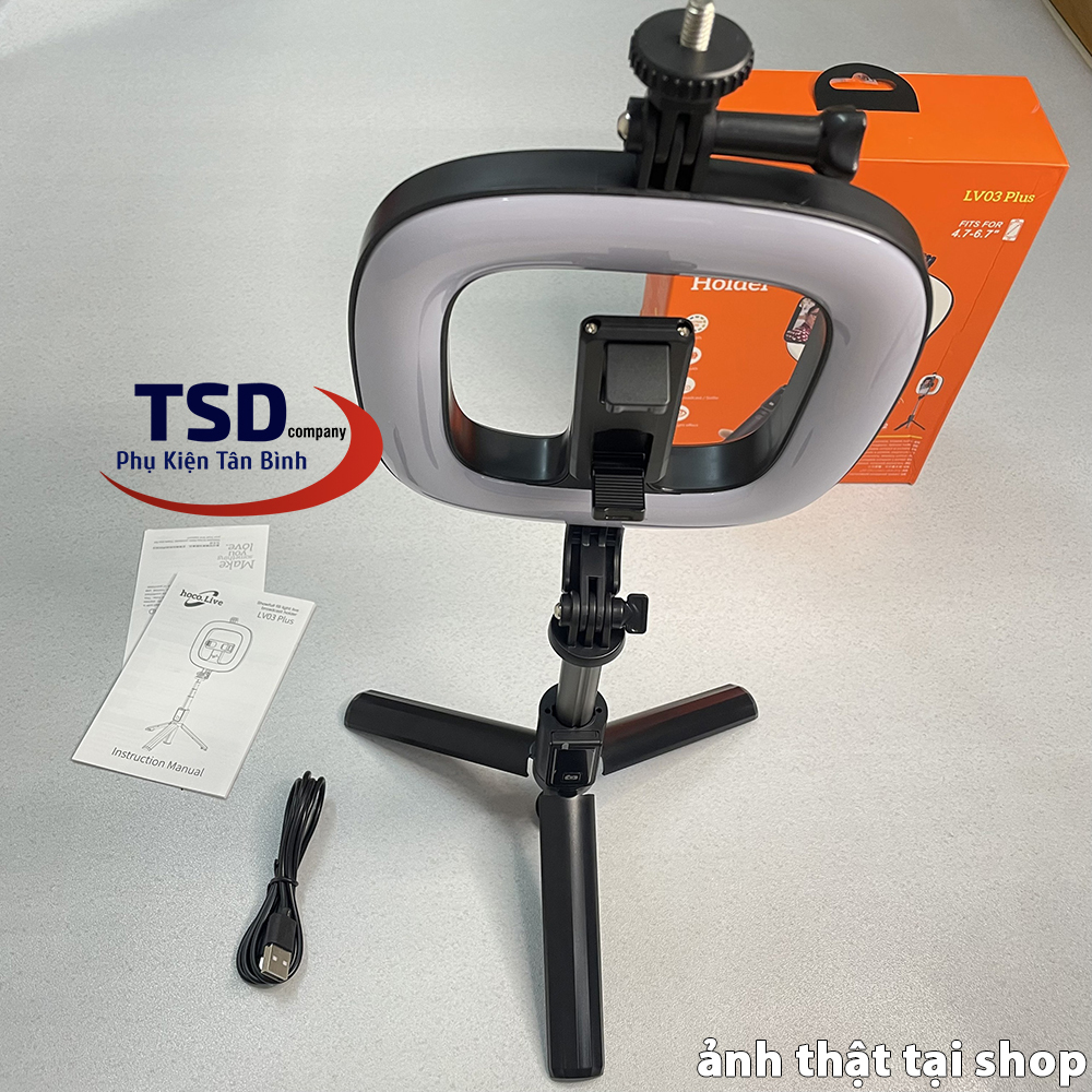 - Giá đỡ LV03 Plus nhỏ gọn và dễ dàng mang theo. Bạn có thể sử dụng nó để livestream trực tiếp hoặc chụp ảnh selfie mọi lúc, mọi nơi. Sản phẩm này cung cấp cả chức năng giữ điện thoại và đèn phát sáng. Điều này giúp bạn tiết kiệm không chỉ thời gian mà còn cả không gian khi cần phục vụ cho các hoạt động chụp hình selfie hay livestream.