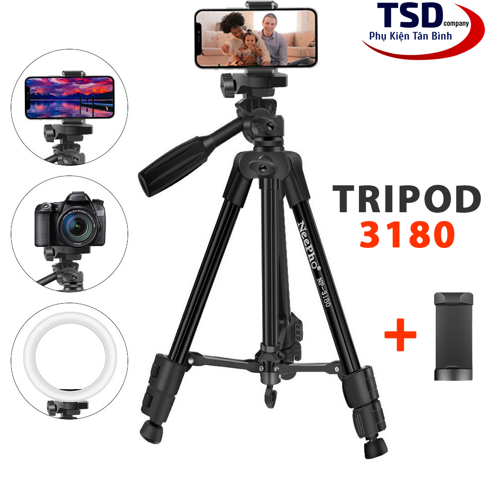 Chân giá đỡ máy ảnh Tripod 3180 có chiều cao 140cm, thiết kế cứng cáp, tripod 3180 là phụ kiện hỗ trợ quay phim, chụp ảnh chuyên nghiệp, có tích hợp tay cầm hỗ trợ quay video rất tiện lợi, phù hợp quay review, livestream, Vlog, Youtuber..