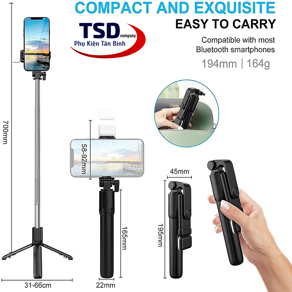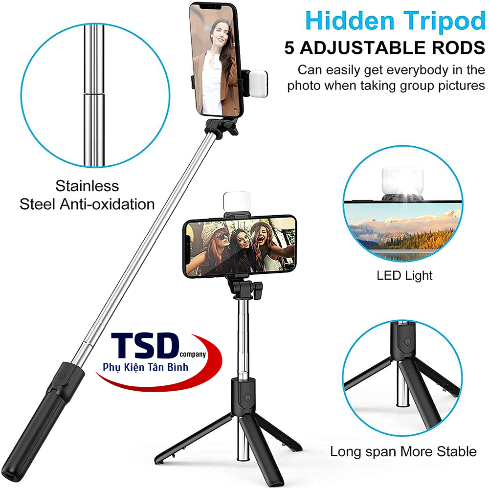 Gậy Tripod 3 Chân Selfie Stick R1S Tích Hợp Đèn Trợ Sáng Chụp Ảnh ( Kết Nối Bằng Bluetooth )