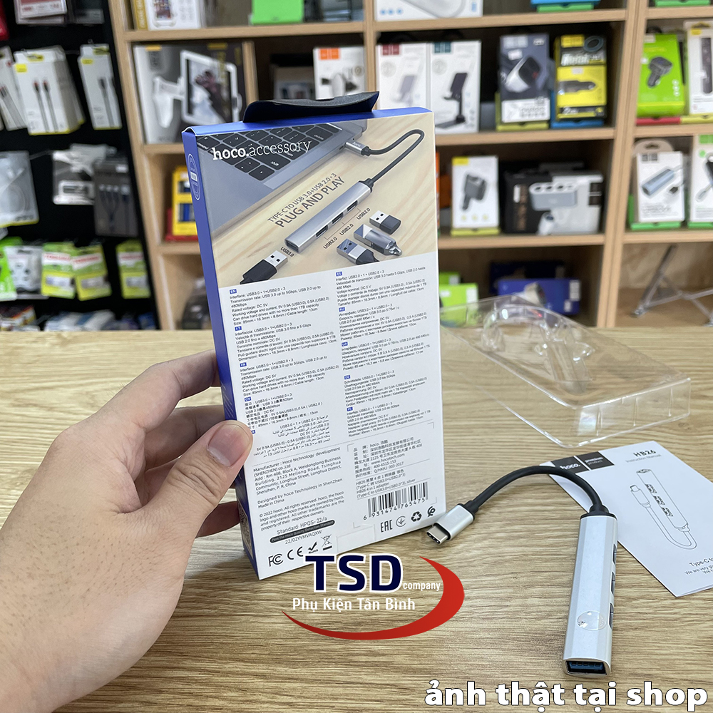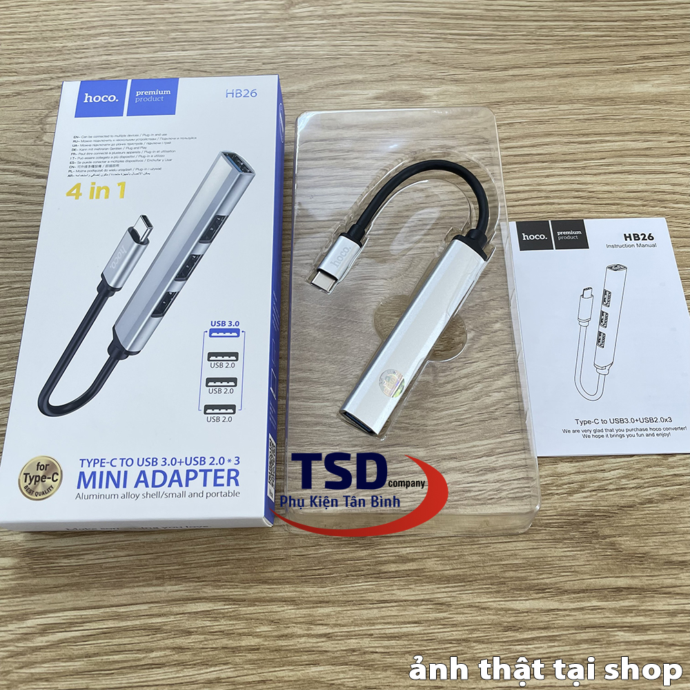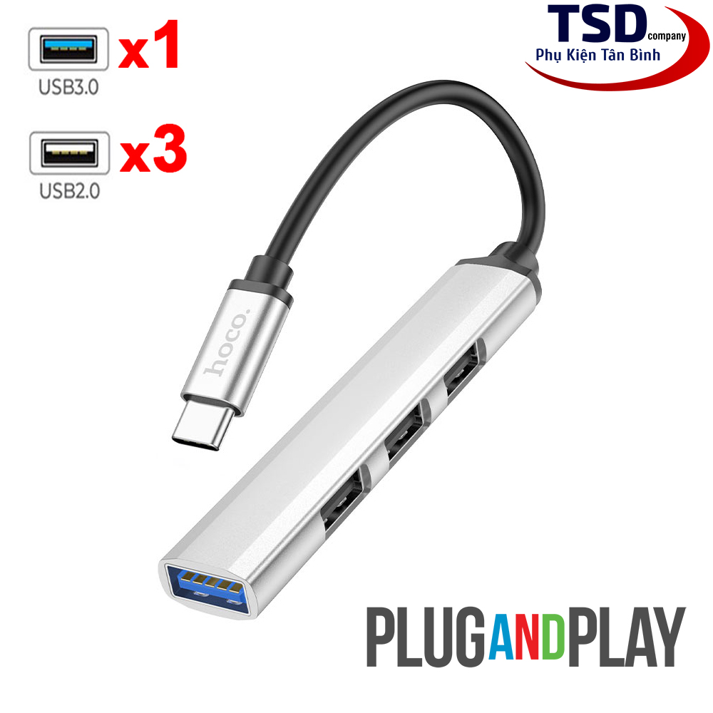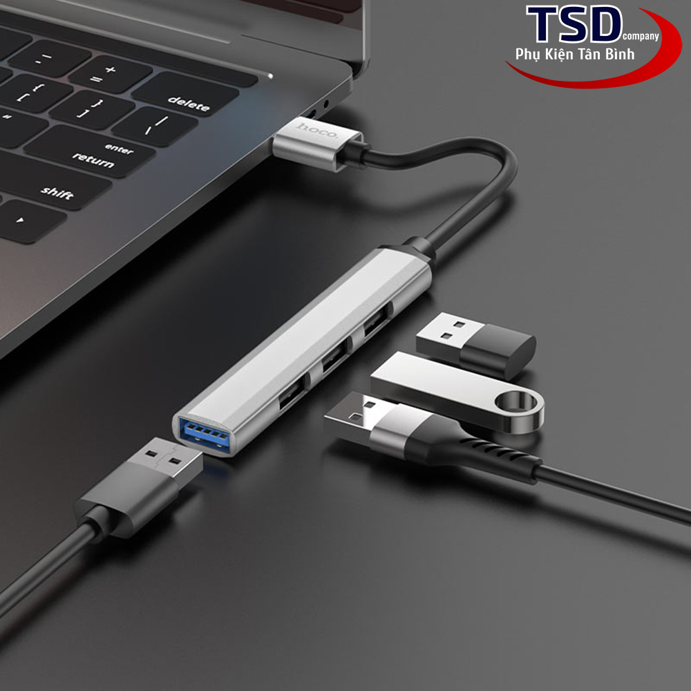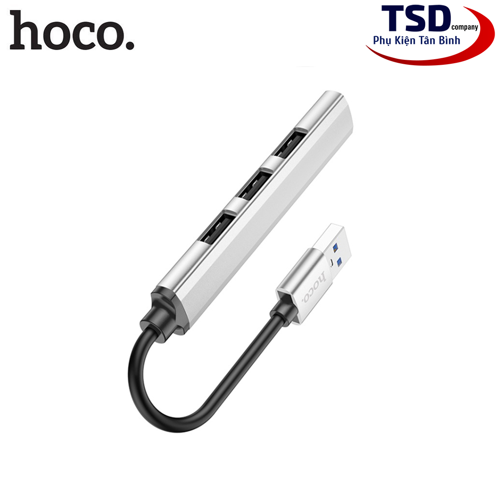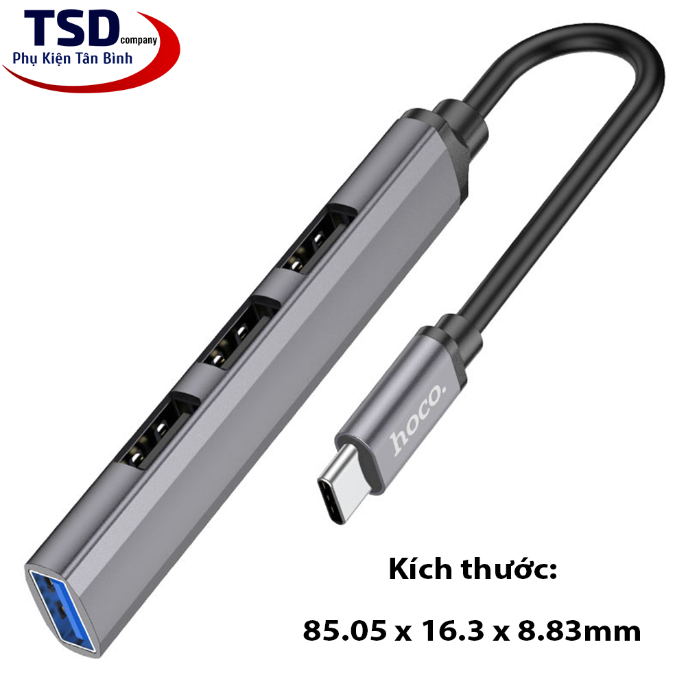 Hub USB Hoco HB26 với 3 cổng USB 2.0, 1 cổng USB 3.0 và một đầu USB-C để kết nối với cổng USB-C trên máy tính. Hoco HB26 hỗ trợ chia cổng usb trên máy tính thành 4 cổng usb trên hub. Ngoài việc hỗ trợ truyền dữ liệu thì Hub còn giúp bạn kết nối với những thiết bị sử dụng cổng USB khác. Như quạt tản nhiệt, USB, chuột, lót chuột rgp, fan mini, đầu đọc thẻ nhớ…