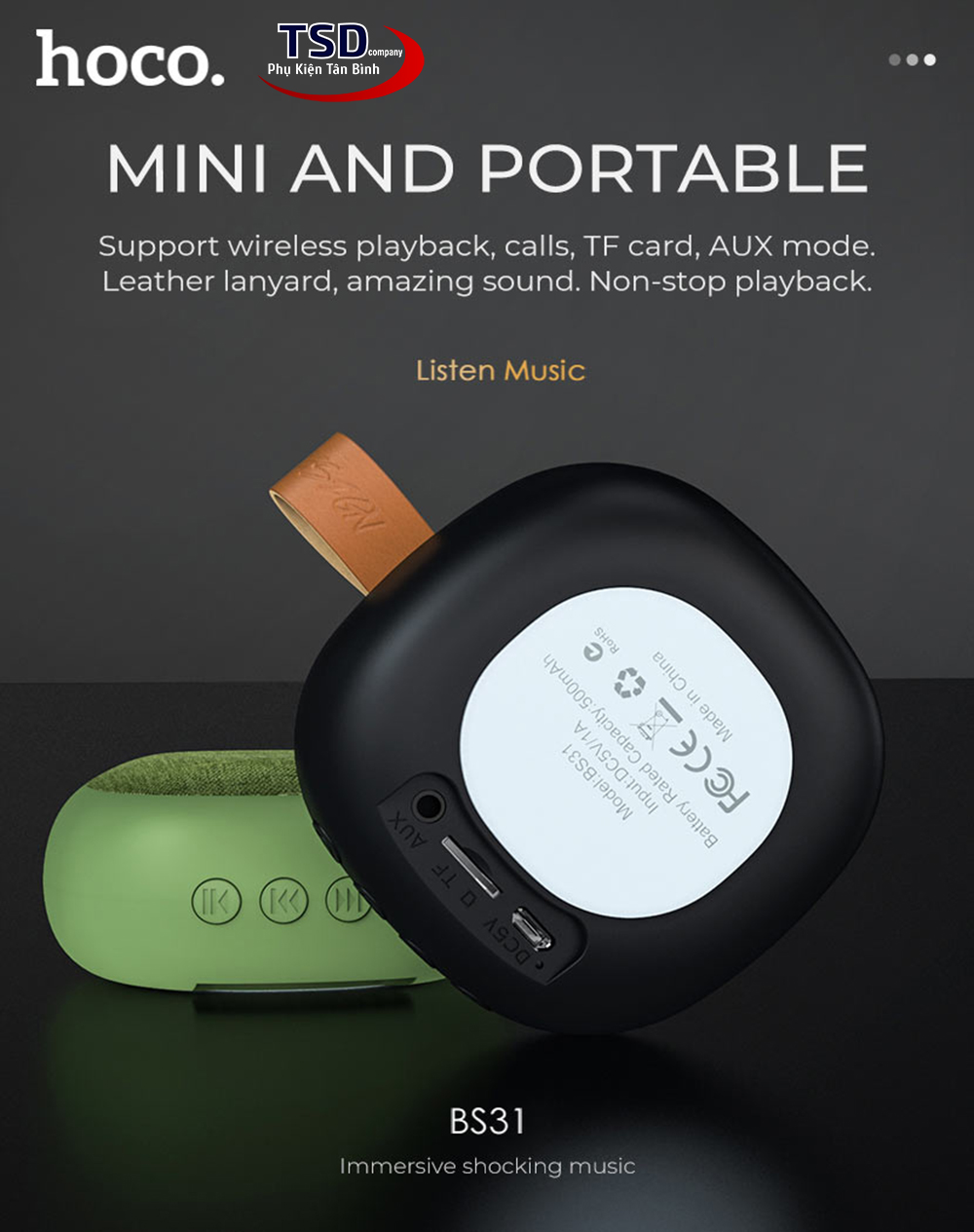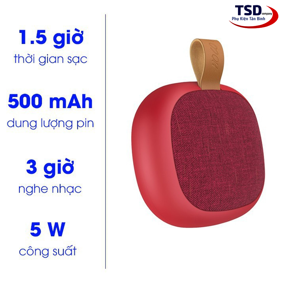 - Loa chủ yếu được gia công từ chất liệu nhựa PC cao cấp nên rất bền và đẹp. Kết hợp cùng kiểu dáng thời trang, nhỏ gọn càng làm cho chiếc loa bluetooth hoco bs31 trở nên thú vị hơn. Loa được trang bị pin dung lượng 500mAh cho bạn thời gian nghe nhạc lên đến 4 giờ và thời gian nói chuyện điện thoại lên đến hơn 5 giờ. Trong khi thời gian sạc chỉ mất 1.5h là bạn đã có thể thoải mái sử dụng loa với nhiều mục đích khác nhau rồi.