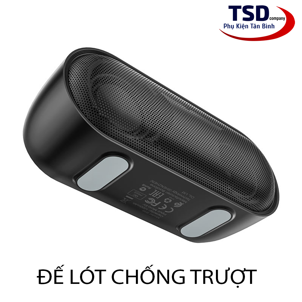 Cạnh sau của loa được thiết kế một cổng micro USB, một cổng Audio tương thích với jack cắm 3.5mm và một cổng để cắm thẻ nhớ. Loa hỗ trợ thẻ nhớ TF 32GB nên bạn có thể tận hưởng bất cứ bản nhạc yêu thích nào được lưu trong thẻ.