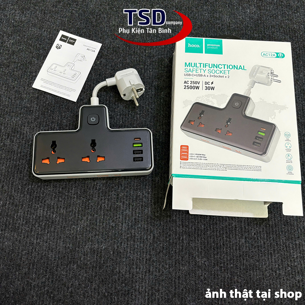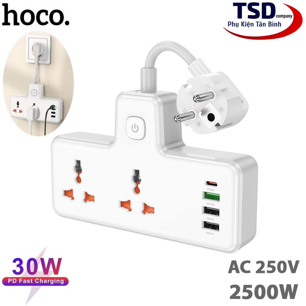 - Ổ Cắm Điện Đa Năng Có Cổng Sạc USB Hoco DC31 2500W Chính Hãng