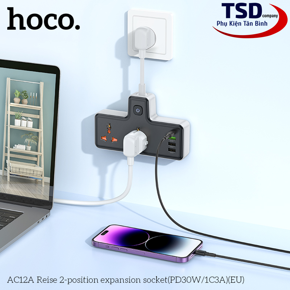 - Ổ Điện Đa Năng Có Cổng Sạc Thông Minh Hoco AC8A Chính Hãng