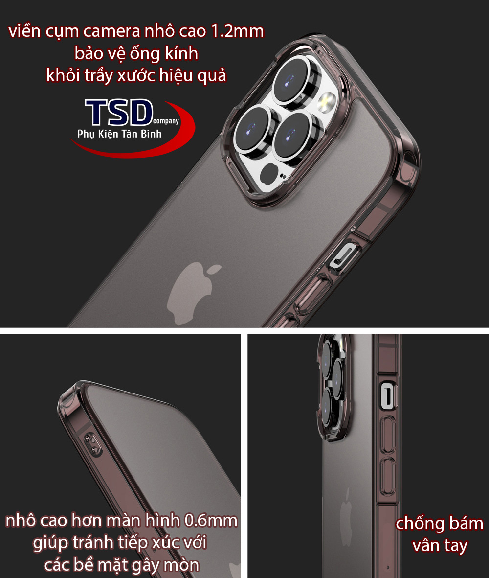 Tương thích dòng iPhone 12, 12 pro, 12 pro max, 13, 13 pro, 13 pro max, 14, 14 plus, 14 pro, 14 pro max, 15, 15 plus, 15 pro, 15 pro max, 16, 16 plus, 16 pro, 16 pro max có độ dày tối thiểu đối với 1 chiếc ốp lưng chuẩn chống sốc quân đội. Bảo vệ tối đa nhờ công nghệ túi khí nén bên trong. Ngoài ra, được chế tác với lớp phủ Nano Oleophobic bên ngoài nhằm chống bám vân tay và chống trầy xước.