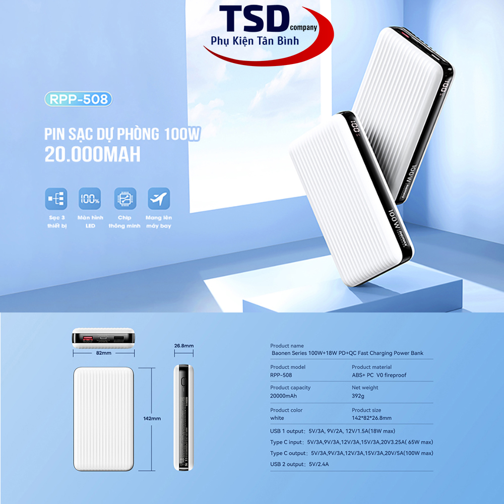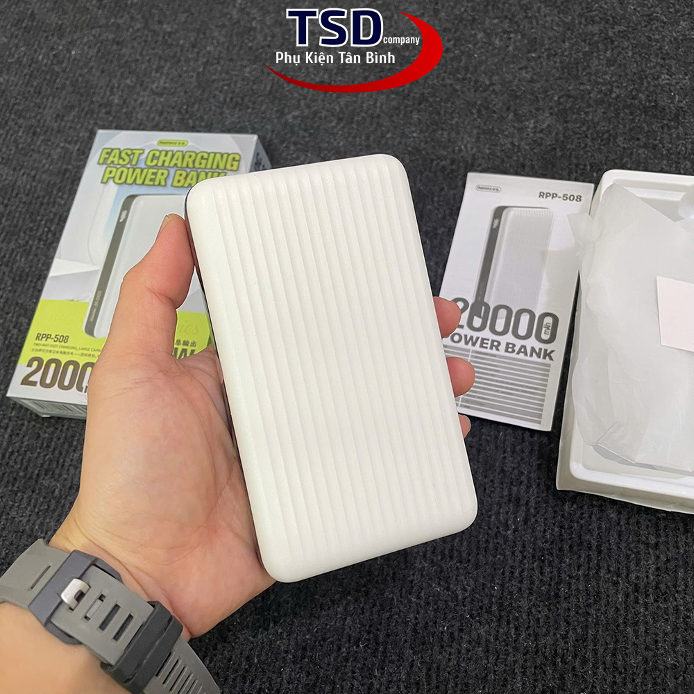 Pin sạc dự phòng 20000mAh 100W Remax RPP-508 là sự lựa chọn tuyệt vời dành cho người dùng sở hữu nhiều thiết bị di động. Với dung lượng lớn cùng công suất lớn 100W, Remax RPP-508 cho khả năng sạc nhanh điện thoại, máy tính bảng & laptop.