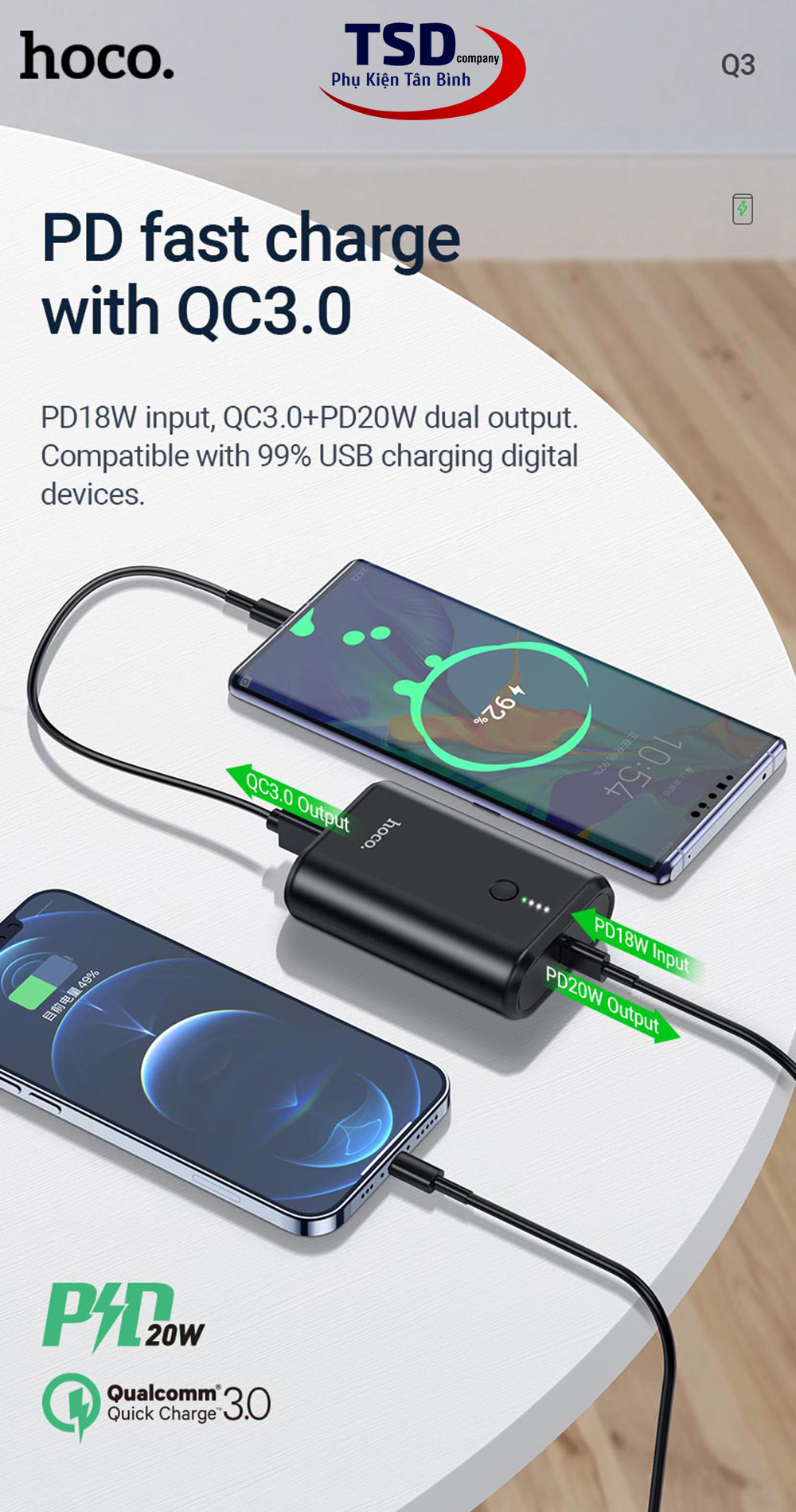 Bạn đang cần tìm pin dự phòng mà hỗ trợ sạc nhanh đúng không ? Đây đây không cần phải tìm đâu xa xôi nữa Pin sạc dự Phòng Hoco Q3 đáp ứng đủ tất cã những gì bạn đang tìm kiếm đây!